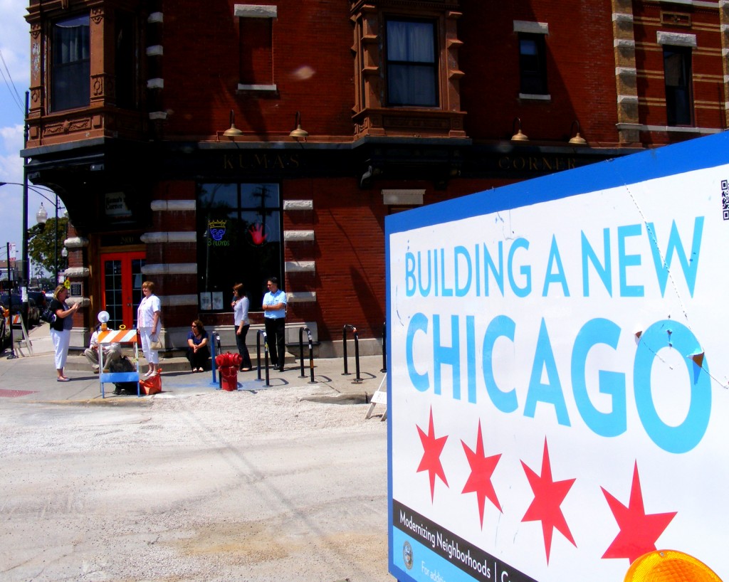 Lunch in Chicago with six friends from work. Our original destination was Kuma’s Corner, but it was in the middle of a construction zone and had a sign on the door that read “We hope to reopen around five pending the city of Chicago is finished doing their waterly bidding.” (Don’t feel badly. I don’t know what it means either, except that the restaurant was closed.)