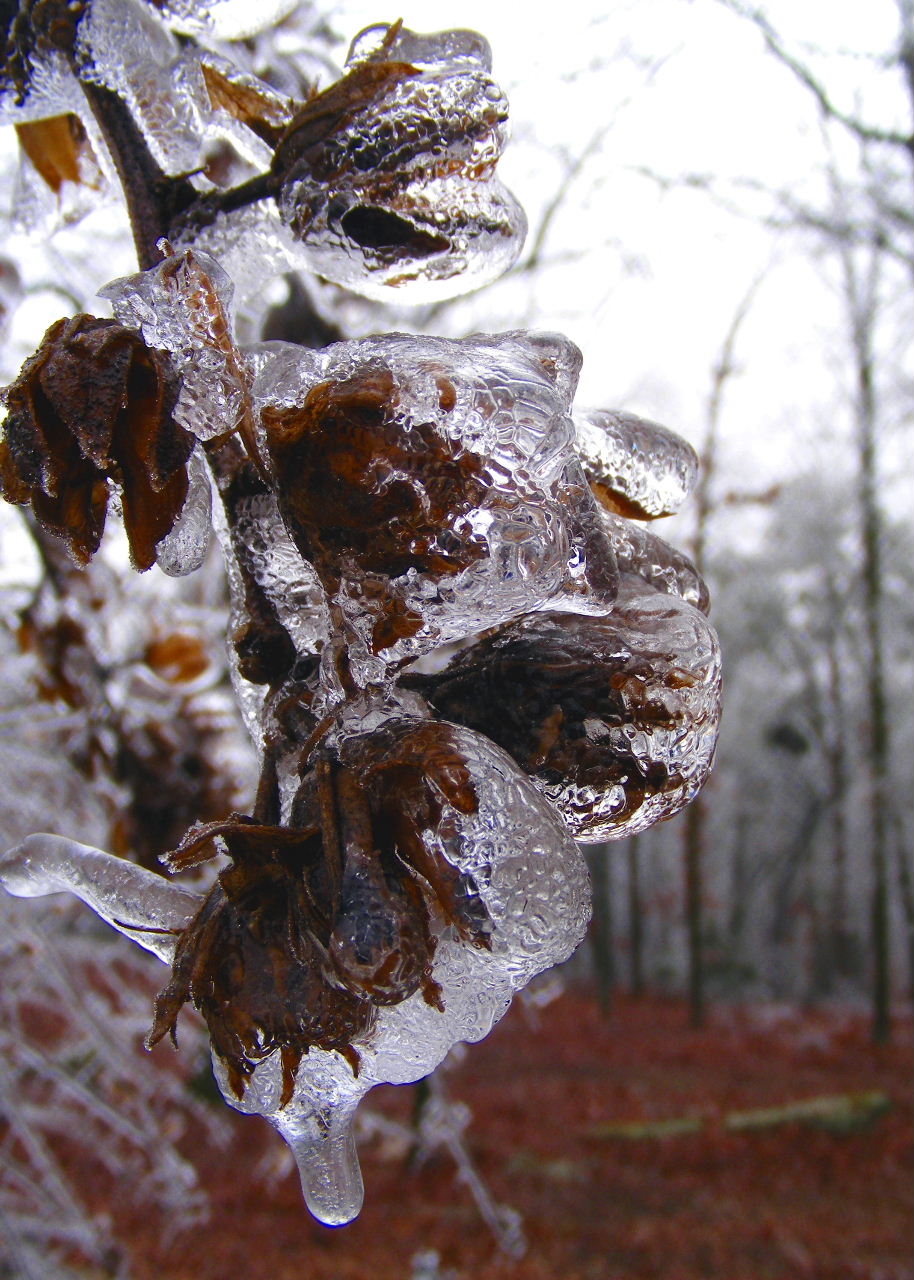 My brother-in-law’s house was on the edge of the massive ice storm in late January that devastated northern Arkansas, southern Missouri and Kentucky. We arrived two days later, and everything outdoors was still frosted. Here are a few photos I took in his yard.