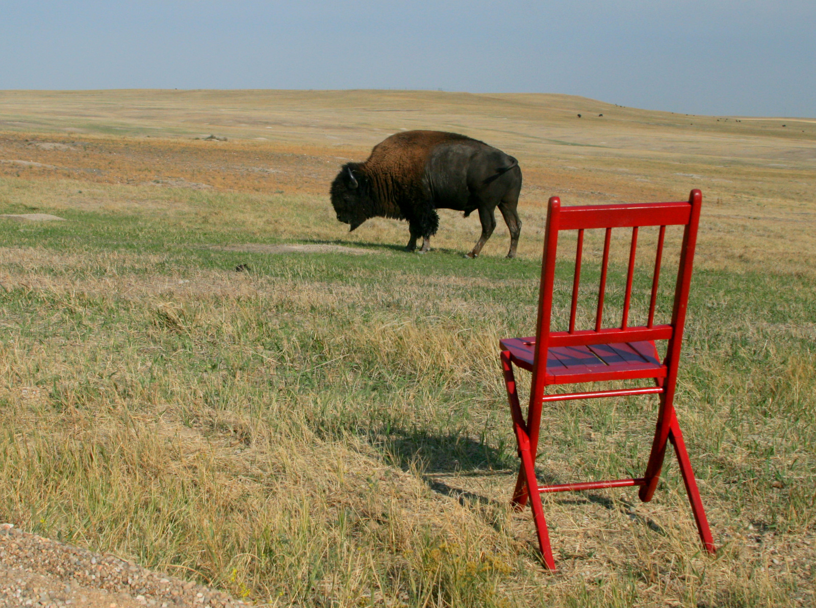 It seemed inclined to stick around, so I got out of the car. It paid no attention. I walked around to the back of the car. It paid no attention. I pulled the Red Chair out of the trunk and it immediately began walking away. This started a trend I noticed all week — animals didn’t mind the car, didn’t even mind me outside the car, but when I pulled out the chair, they took off. Still, I got a pretty good shot.