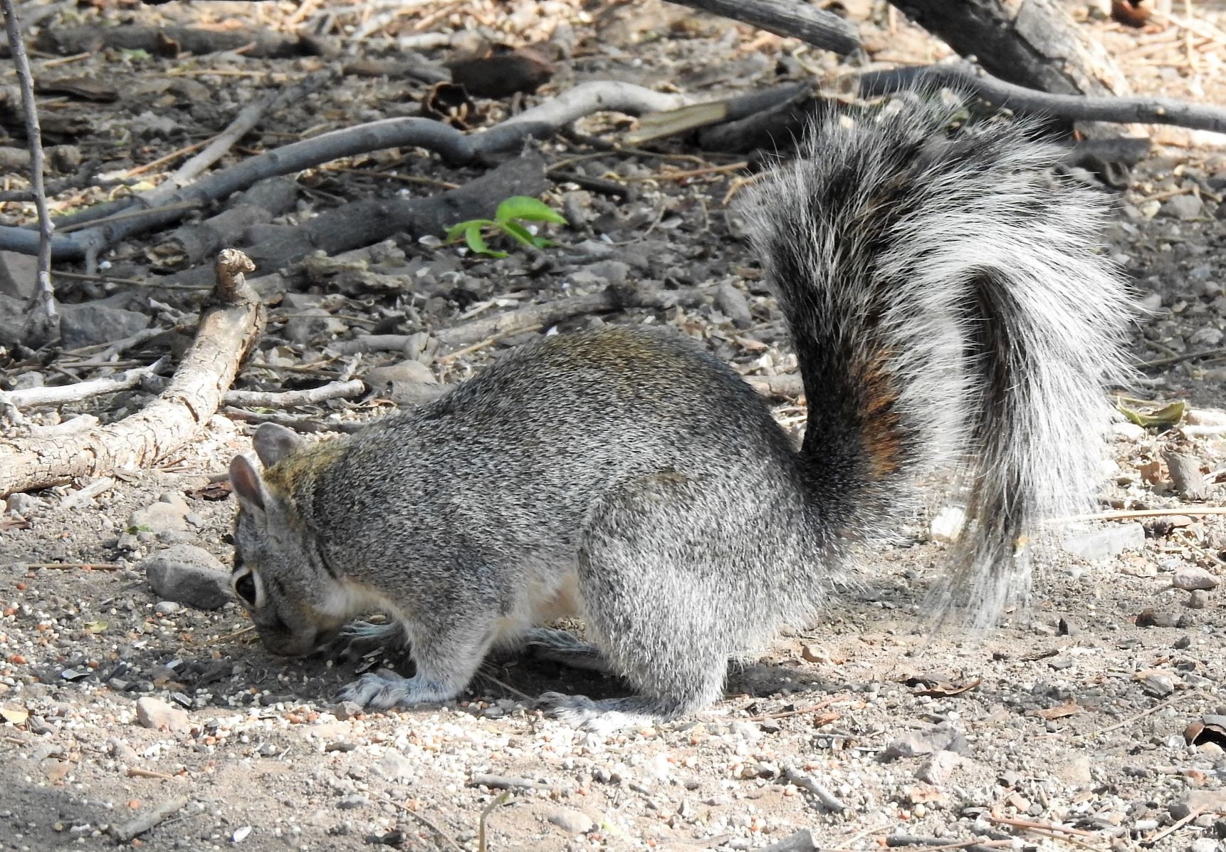 There were usually two or three around at Paton’s, although they generally stuck to the feeders furthest from the birders. One morning a woman asked me if she was seeing a skunk at the far end of the yard. It was an Arizona Gray Squirrel, but I could see how the long black tail with contrasting white edging could easily give the impression of a skunk.