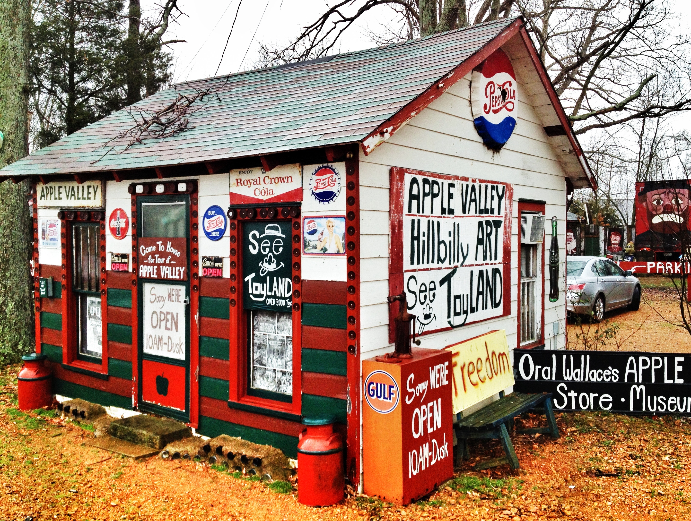 It was only an hour to Sikeston where we were eating lunch, so we had some time to kill. And it was raining. We sat in the parlor of Summers Riverview Mansion while we looked on our phones for something to do in Paducah. At almost the same moment, we each found a place called Apple Valley Hillbilly Garden & Toyland. It looked weird, but we like weird. We asked Henk if he knew anything about it, and he highly recommended it. I thought perhaps we should call in advance to see if they were open on a rainy March Sunday morning, but Henk said not to bother. “Just pull in. Somebody will come out and give you a tour.”