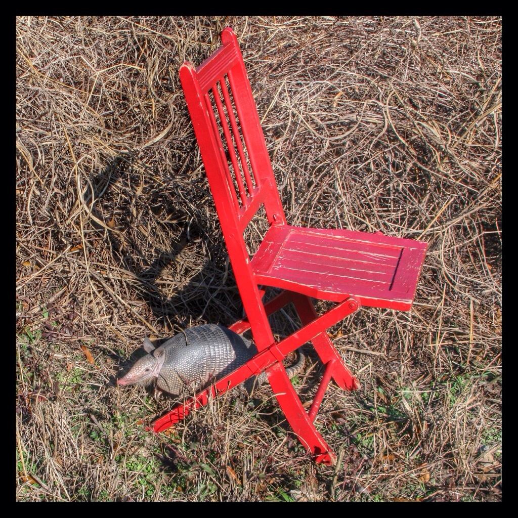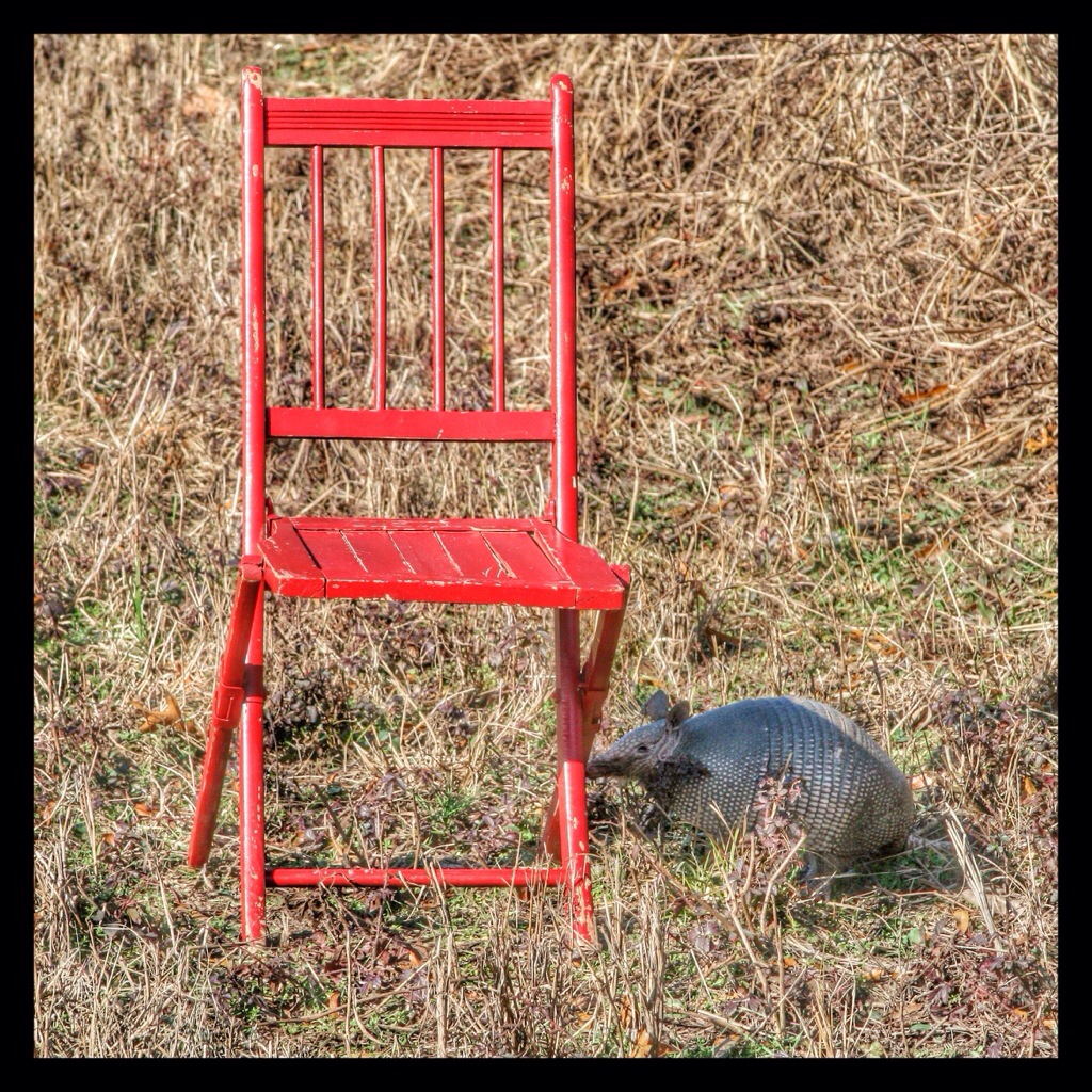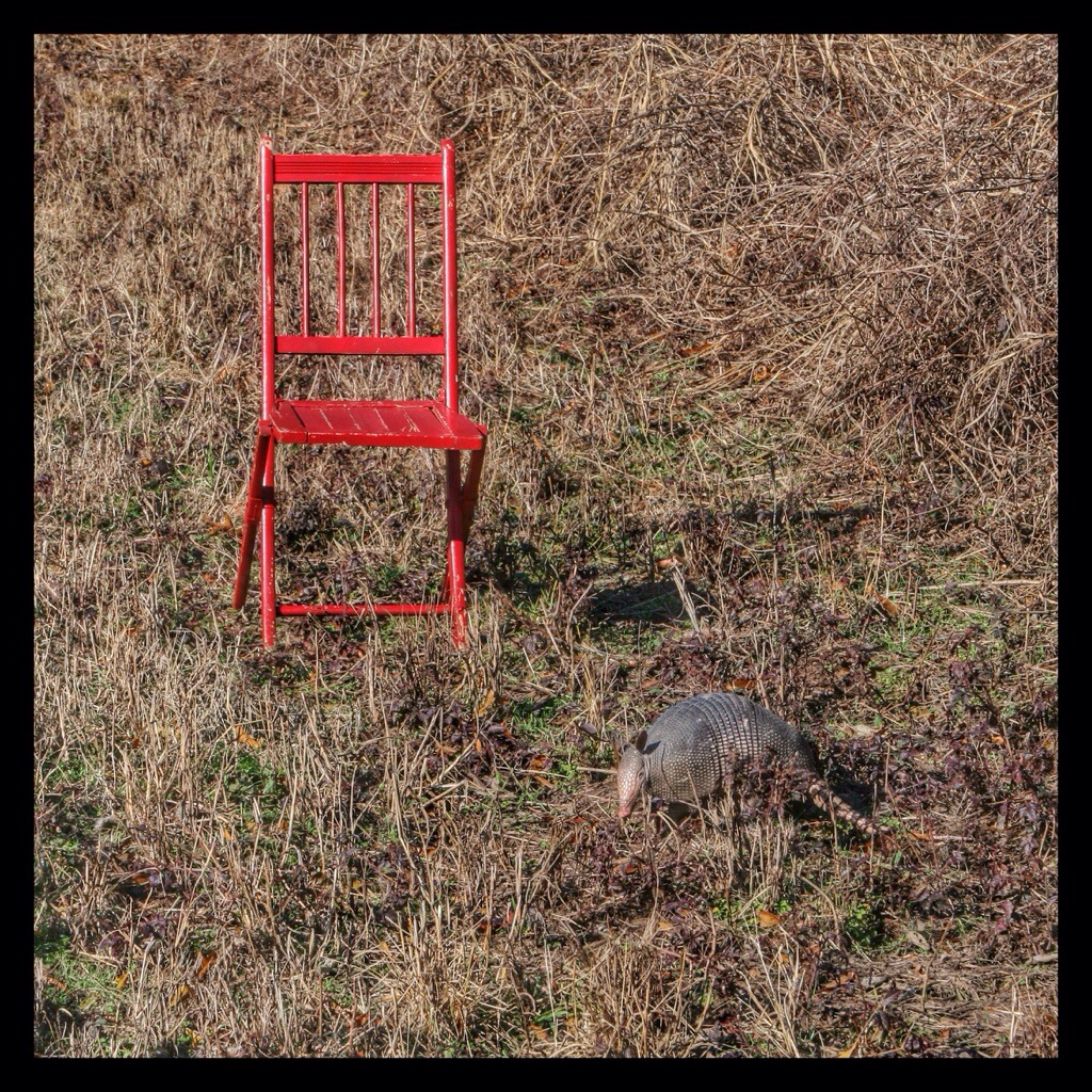 It took me half an hour to get these photos at Holla Bend National Wildlife Refuge. I kept moving the chair along in the short grass in front of the Armadillo until I got the shots I wanted. But I had to move slowly. Twice, when I went too fast, it ducked into the tall weeds, but it soon came out again and resumed its foraging.