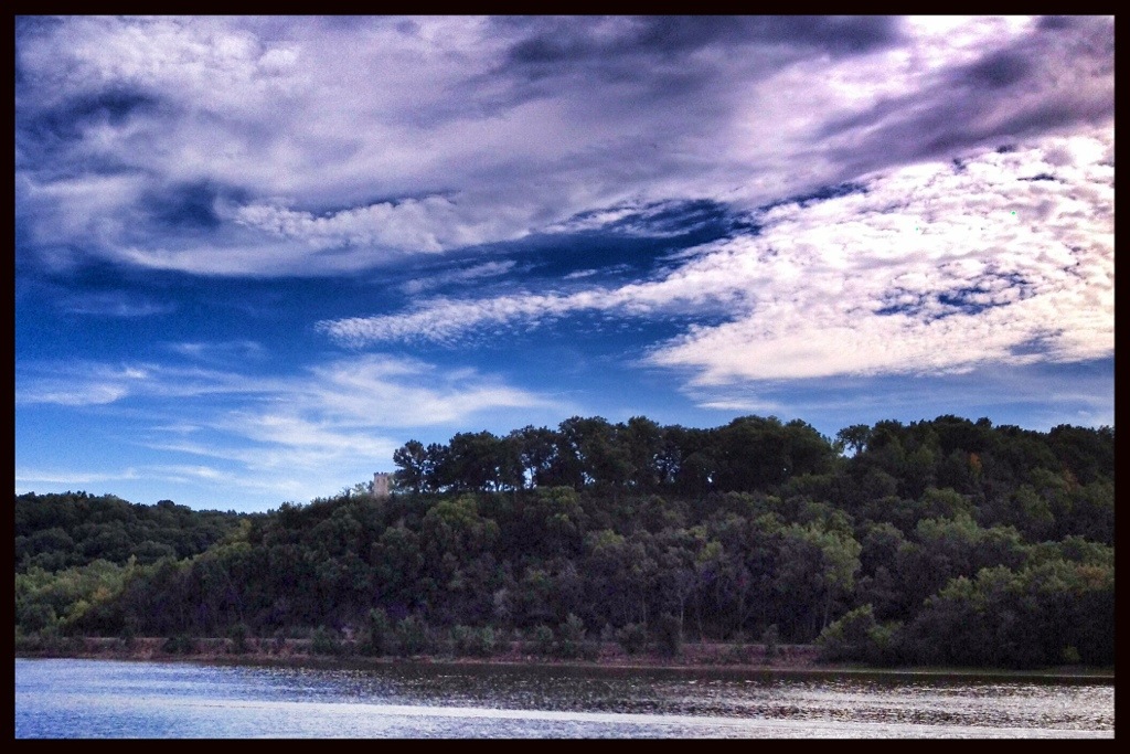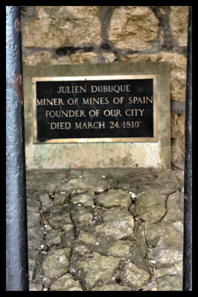 Earlier, on the cruise, our southernmost reach had been next to a bluff with a small castellated structure on top. We were told this was the grave site of Julien Dubuque, a French-Canadian who received permission from the Spanish to mine lead in this area.