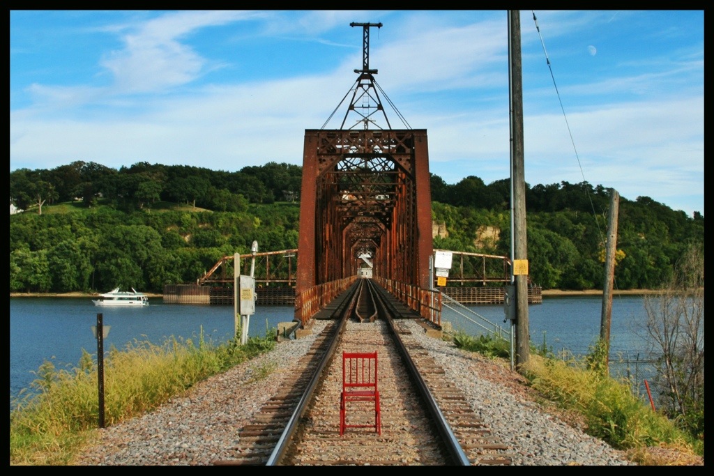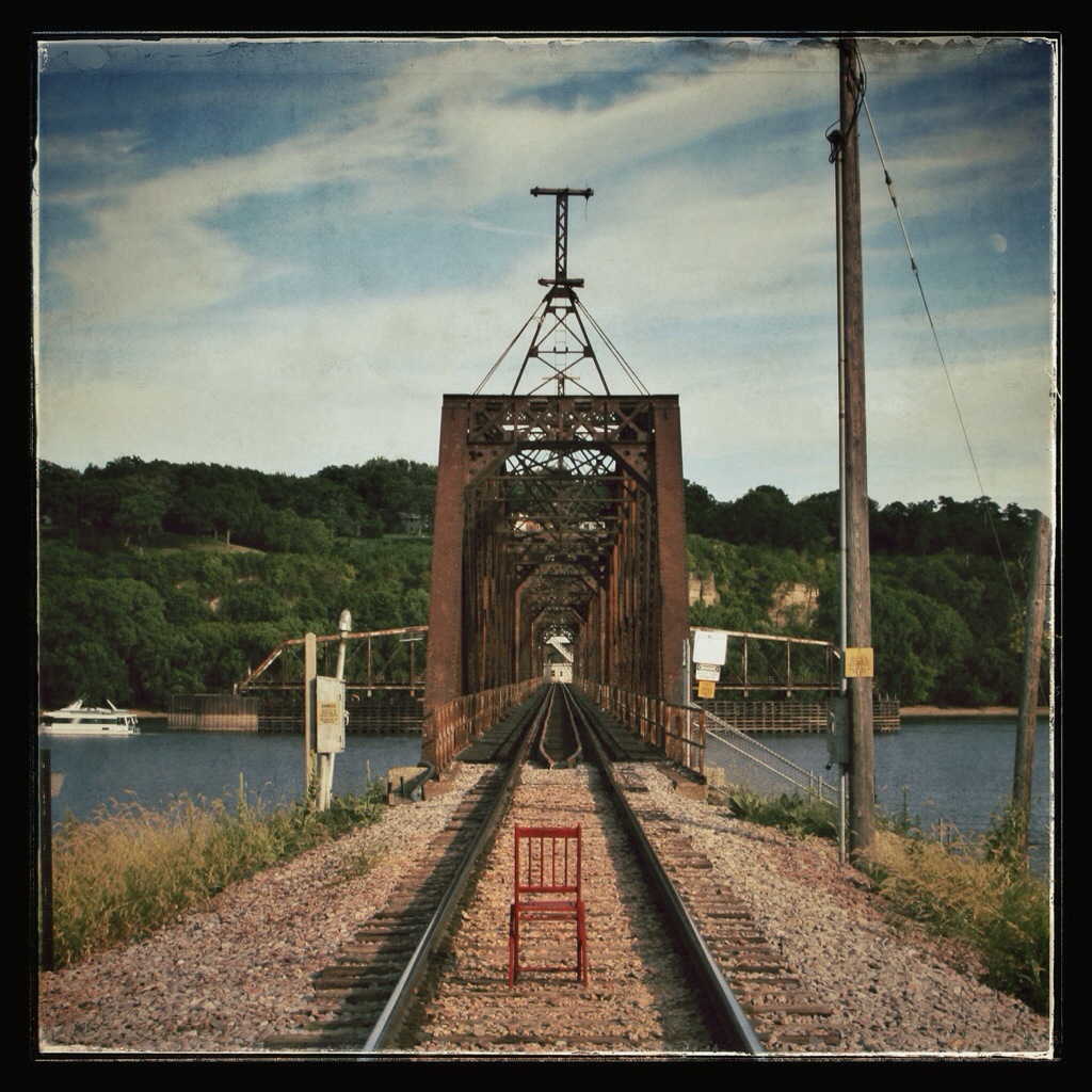 And I paused on my climb back over the railroad embankment to take a photo of the Dubuque Rail Bridge.