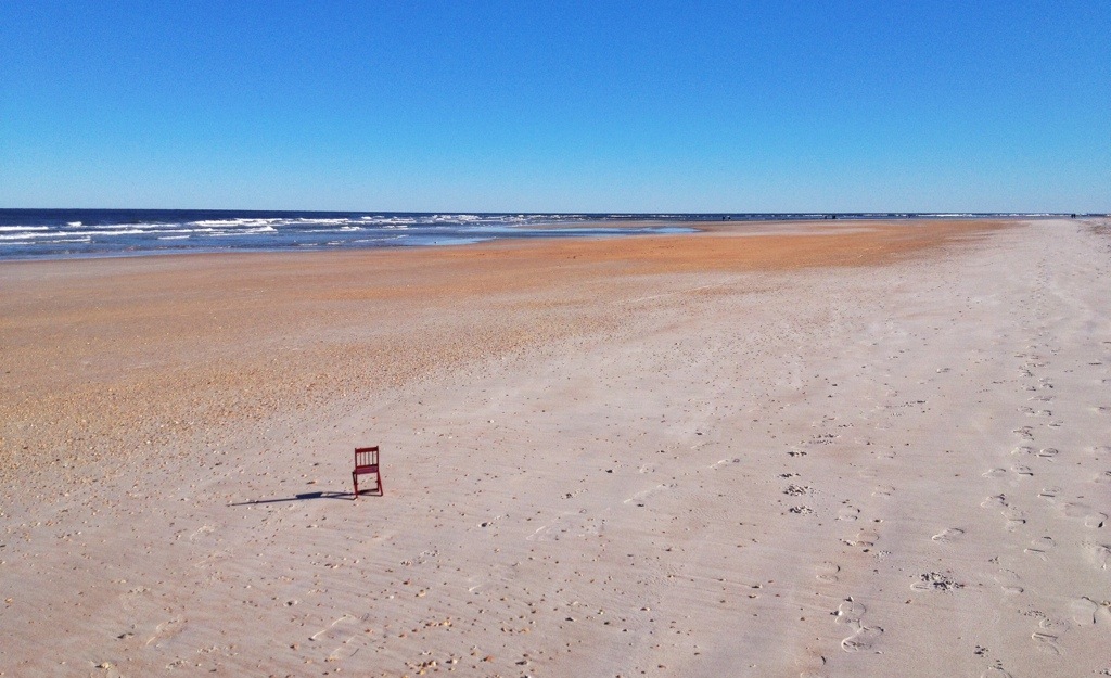 After retrieving my car, I drove across the Bridge of Lions onto Anastasia Island. The next half hour or so didn’t go as planned. I found the St. Augustine Lighthouse, but I didn’t want to pay to get inside because I didn’t have time, or didn’t think I did anyway. I tried to get a photo with the chair from outside the fence, but it didn’t work. My plan was to drive south along Florida A1A, stopping at a beach for a short time, then heading over to I-95 and heading to Orlando.