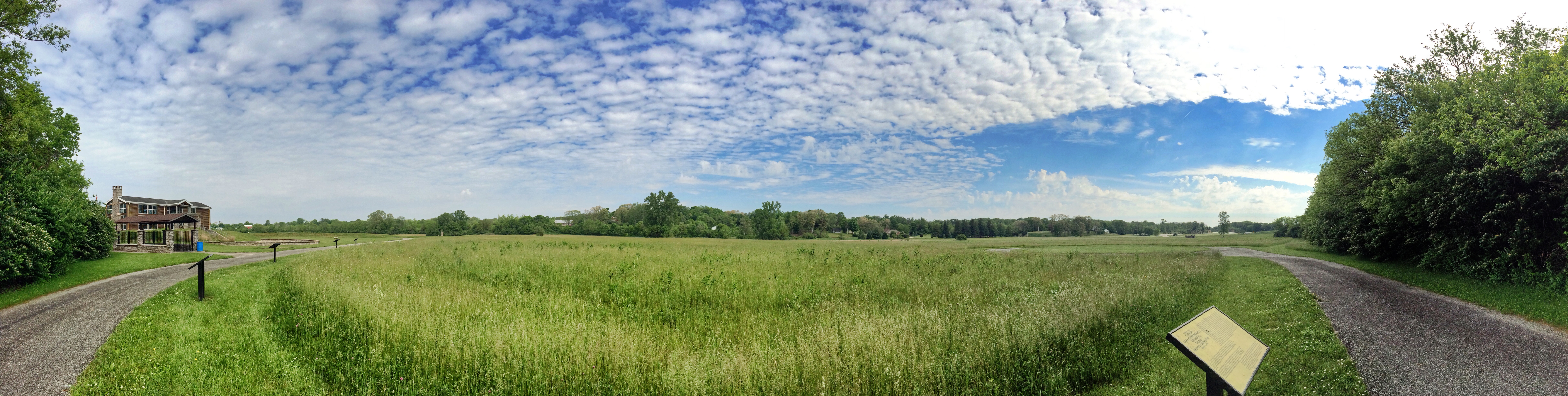 There’s a visitor center on the other side of the battlefield, but of course it was closed on the day we were there. We wandered by and looked around. Here’s a shot of the battlefield from near the building. If you enlarge it, the Clark monument can be seen on the hill in the right distance.