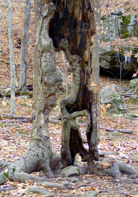 But we were there, and we were well supplied with Blueberry Pop-tarts, so we kept walking. This tree, with a hole large enough for me to squeeze through, was still alive.