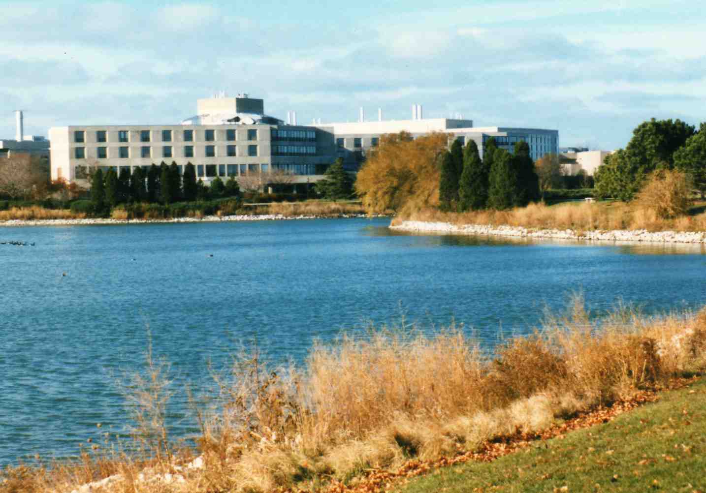 I heard about the Eared Grebe on the Audubon hotline and dragged my friends out after work to look for it. Northwestern University has constructed a campus on landfill that extends 200 yards or so into Lake Michigan for about half a mile along the shore. A twisting lagoon separates the landfill from the buildings.
