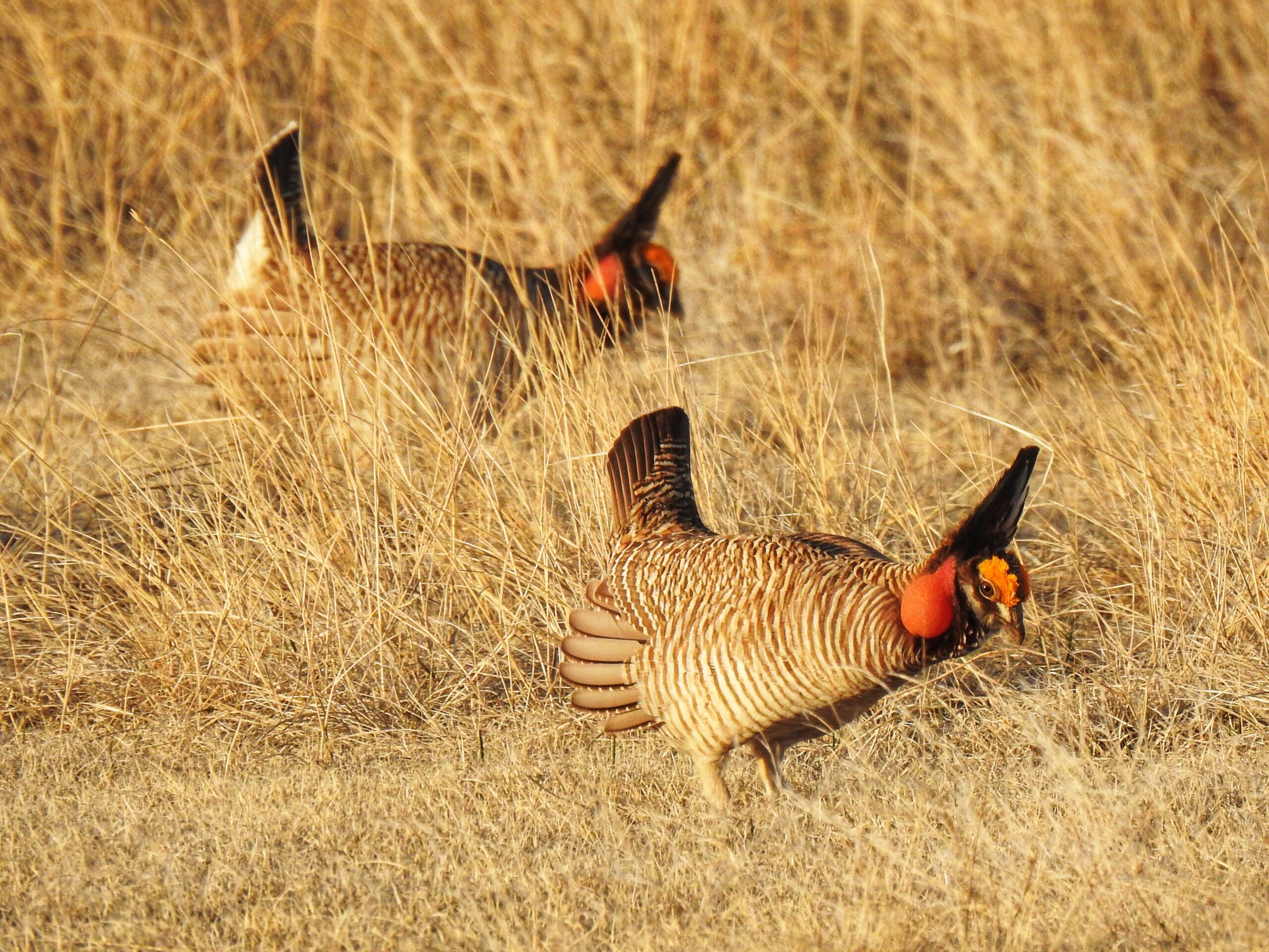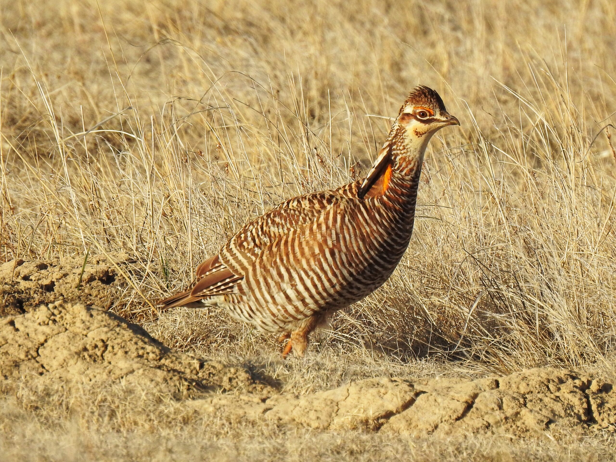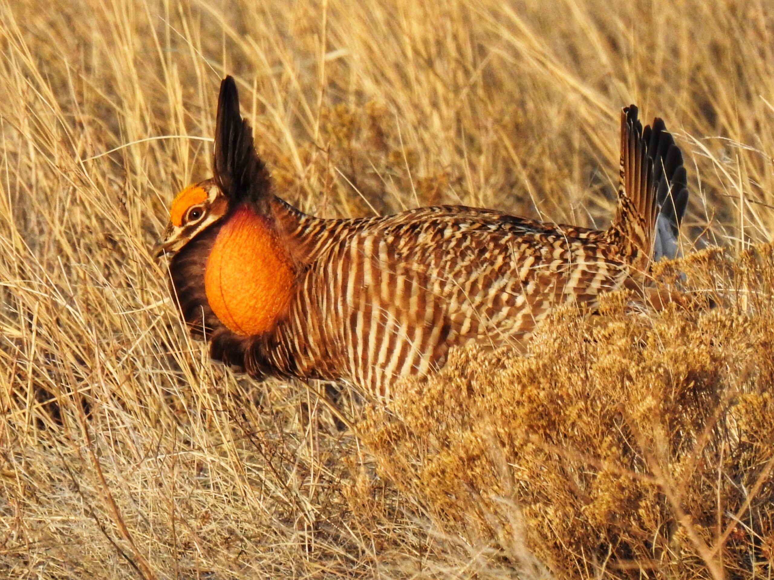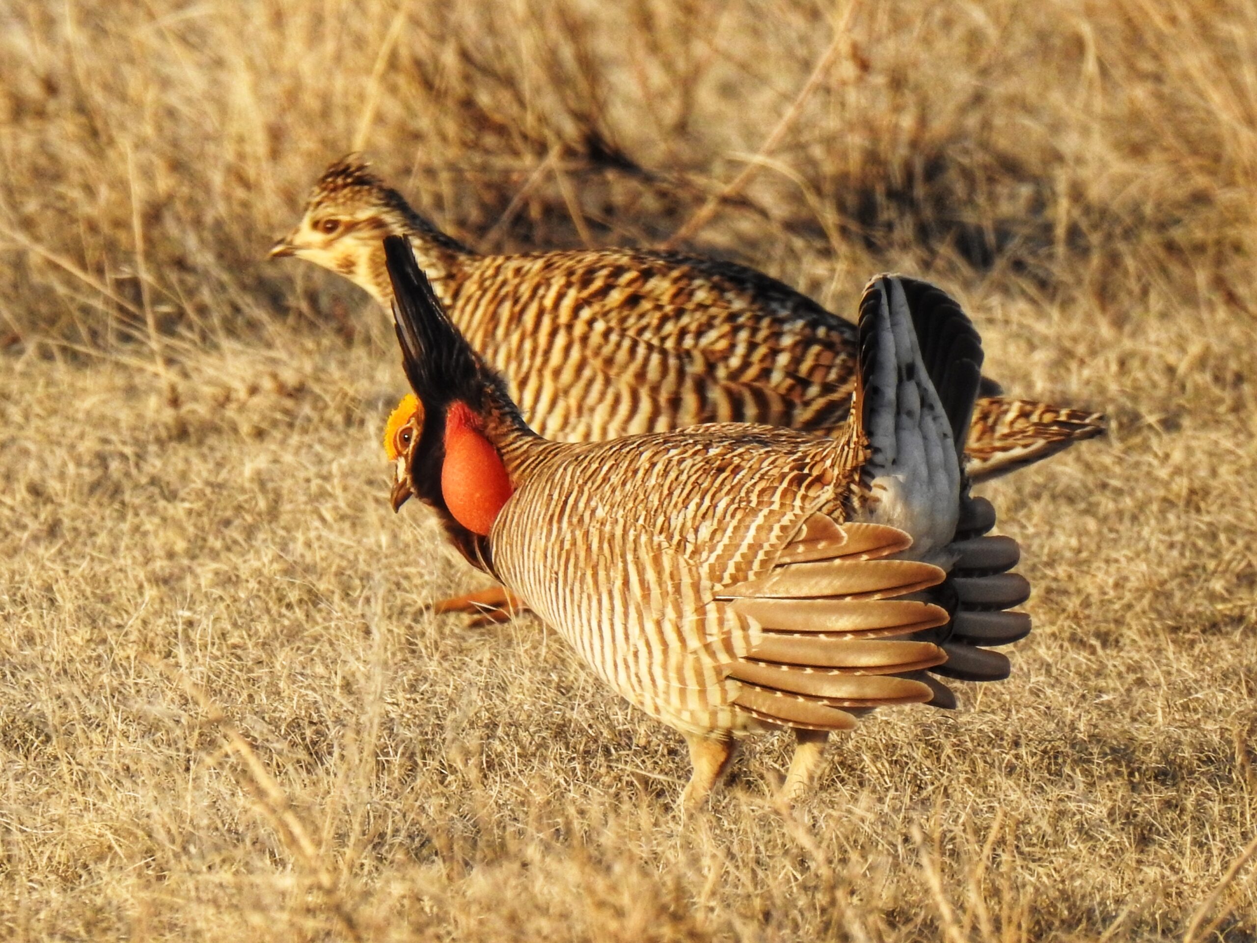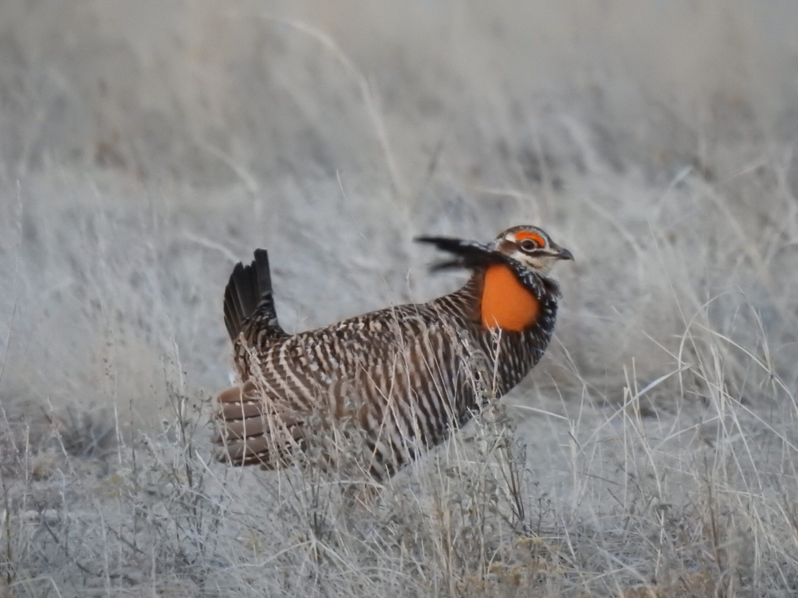 Lesser Prairie-Chickens can be found in Kansas, Oklahoma, Texas, New Mexico, and Colorado, although their numbers are dwindling and most (70%, probably) live in four counties in western Kansas. There are two ways to see them. Either drive a whole lot of back roads and hope to a lucky quick view of a running or flying bird — or — visit a lek when the males are performing their courtship dances. Most, if not all, the leks are on private or protected property, so the way to see a lek is to sign up for a tour. Which is what I did — or tried to do.