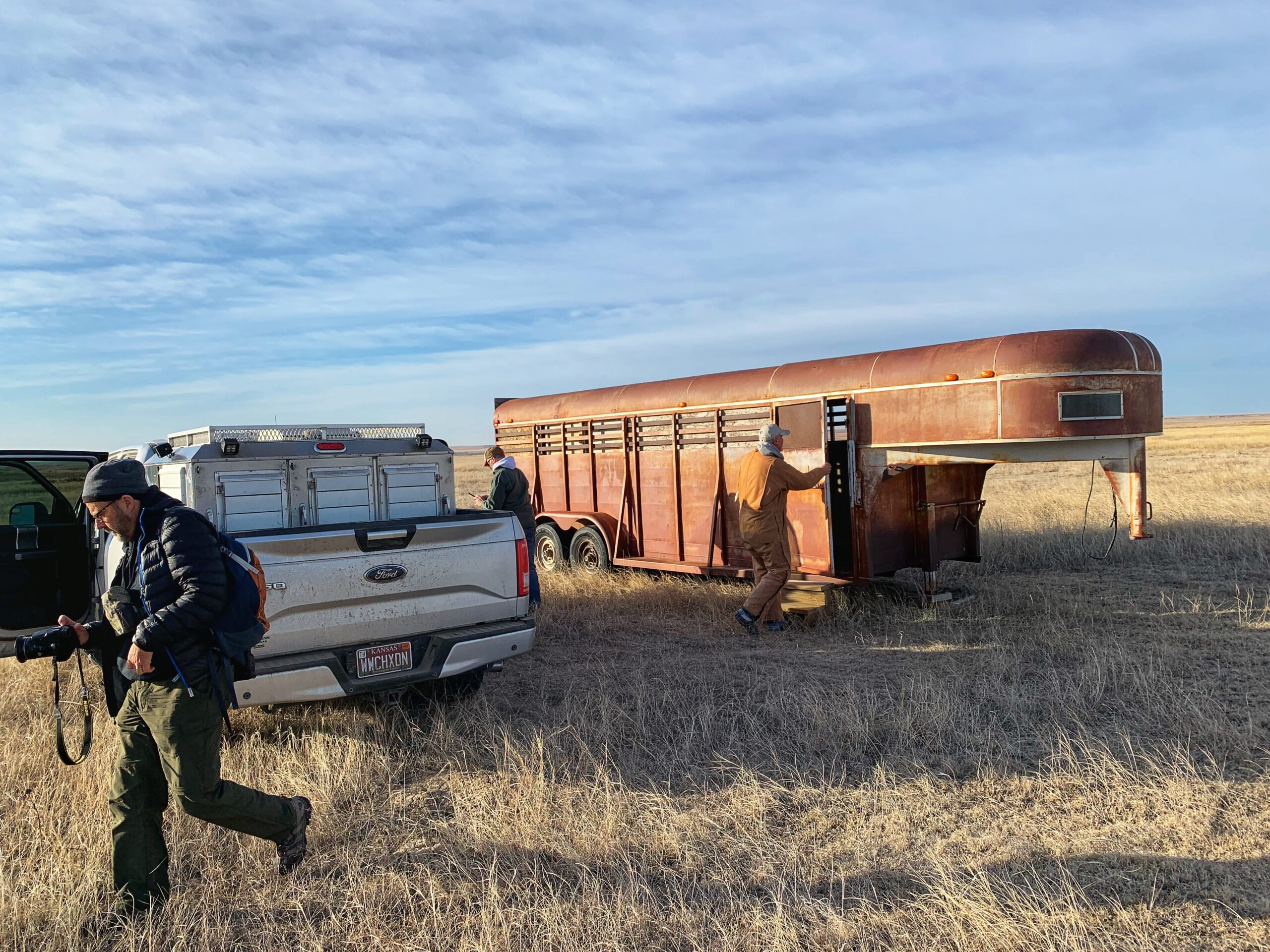 Jim and others did return, and we all sat on a long bench that ran the length of the trailer. It was a chilly morning, around 45° with a bit of a breeze, but it could have been a lot worse. We stared into the darkness and waited and listened. Jim had told us we would hear the birds before we’d see them. We heard several Horned Larks and some distant Coyotes and Ring-necked Pheasants. A beautiful male Pronghorn wandered by, coming within about 30 yards of the trailer before hearing or smelling us and taking off.