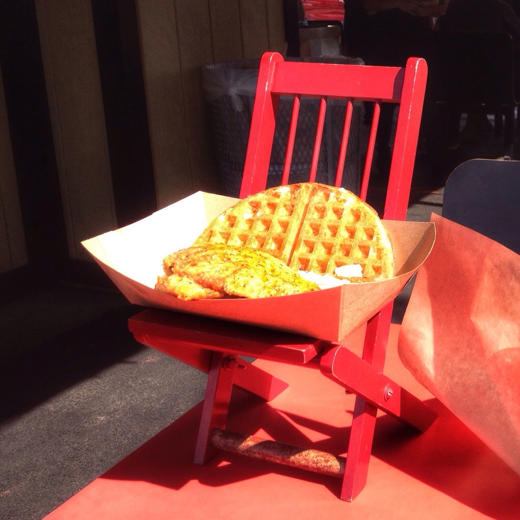 I drove into Orange and ate lunch at Bruxie, a sandwich shop that uses waffles for bread. After circling the block five times, I found a parking spot in the four-car lot behind the restaurant. A young woman was standing out front to answer questions. She explained the waffles and told me their specialty was the Buttermilk Fried Chicken & Waffle with Chili Honey and Cider Slaw. I’m not a fan of fried chicken, but when I visit a restaurant for the experience, I generally go with the special. It was delicious.