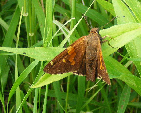 For me, skippers are to butterflies what gulls are to birds — I usually don’t bother to take the time to tell all the similar species apart. But this one was so large and so boldly-marked that I actually managed to figure out what it was.