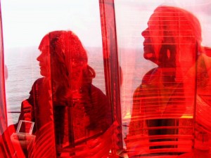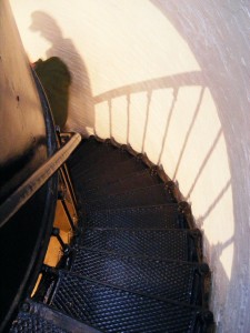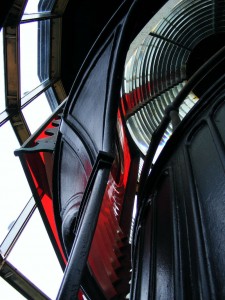 Anyway, there wasn’t much to the tour. The old service shed is a gift shop. There’s a small room at the base of the tower with a few photographs. A spiral staircase leads up to the small landing around the lens itself. Part of the original Fresnel lens is still in place, but bits of it were broken by vandals before the State Parks took over. The ranger giving the tour didn’t really know what she was talking about (and she was the one who told us we couldn’t see sea lions there). The director kept correcting her and adding things she missed. We stayed up top for maybe five minutes.