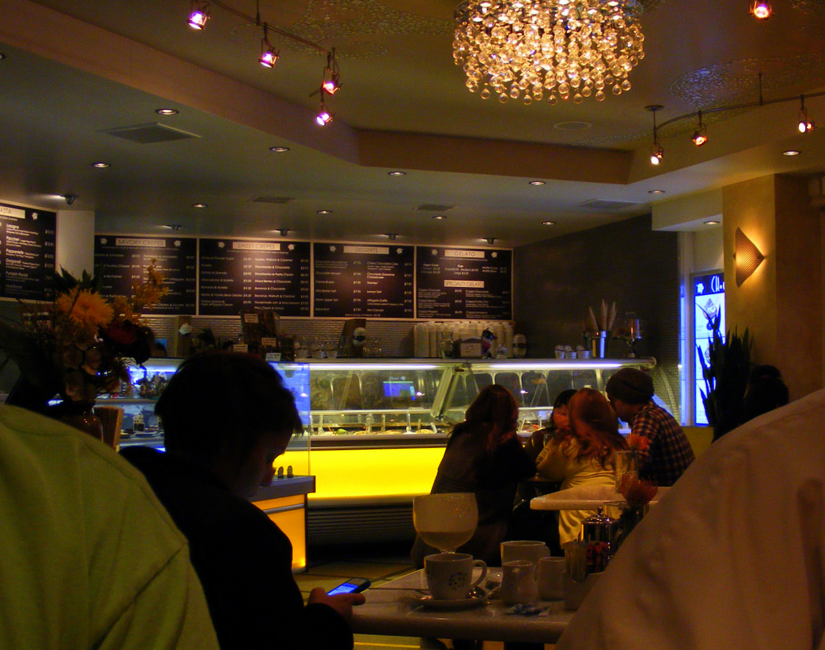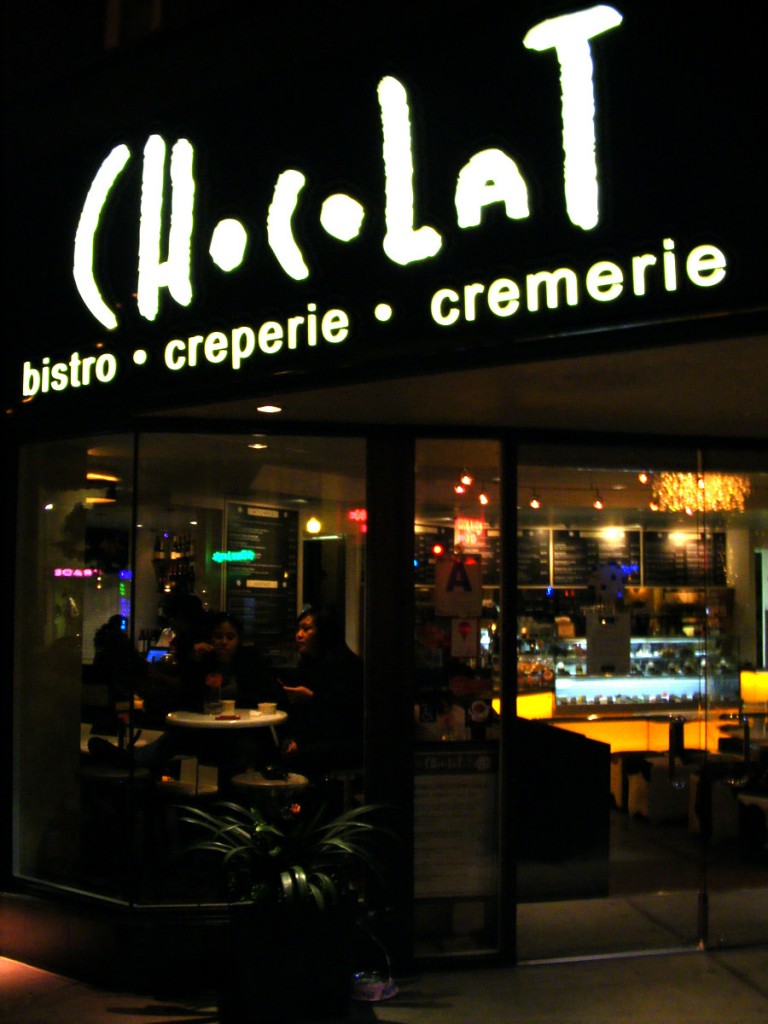 On Tuesday night after working the booth, four of us  decided we wanted pie. My boss found the Chocolat Cremerie on his phone, and we headed into the Gaslamp Quarter of San Diego for a late-night snack.
