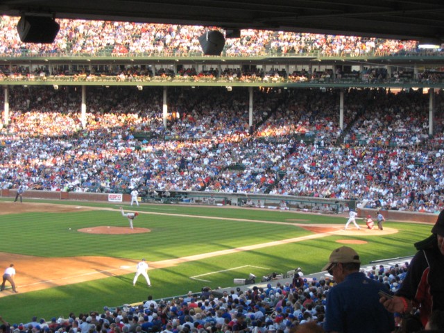 My sister called today and asked if we would be interested in tickets to tonight’s Cubs game at Wrigley Field. It took us about two seconds to say yes. We rode down with a group from work on a fancy coach bus and arrived at 5:00 pm, about an hour before game time.