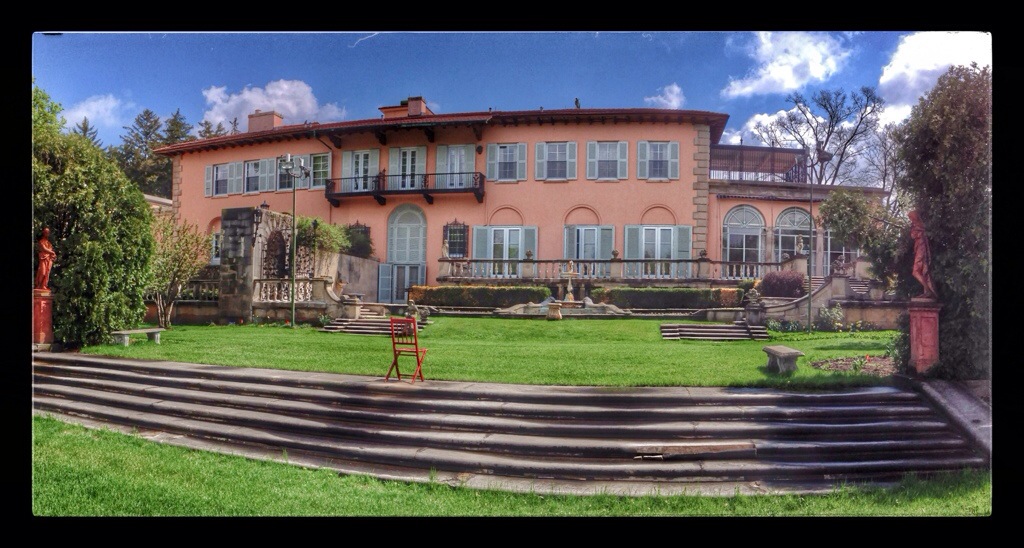 The bars on this sleeping porch were put up in the early 1930’s. We were told that this was done shortly after the Lindbergh baby was kidnapped because the Cuneos were concerned for the safety of their son, John Jr. We were also told that no steps were taken to protect the daughter, Consuela. Again, the official guide hedges quite a bit. I suspect it may have been as much to keep the boy in as to keep other people out.