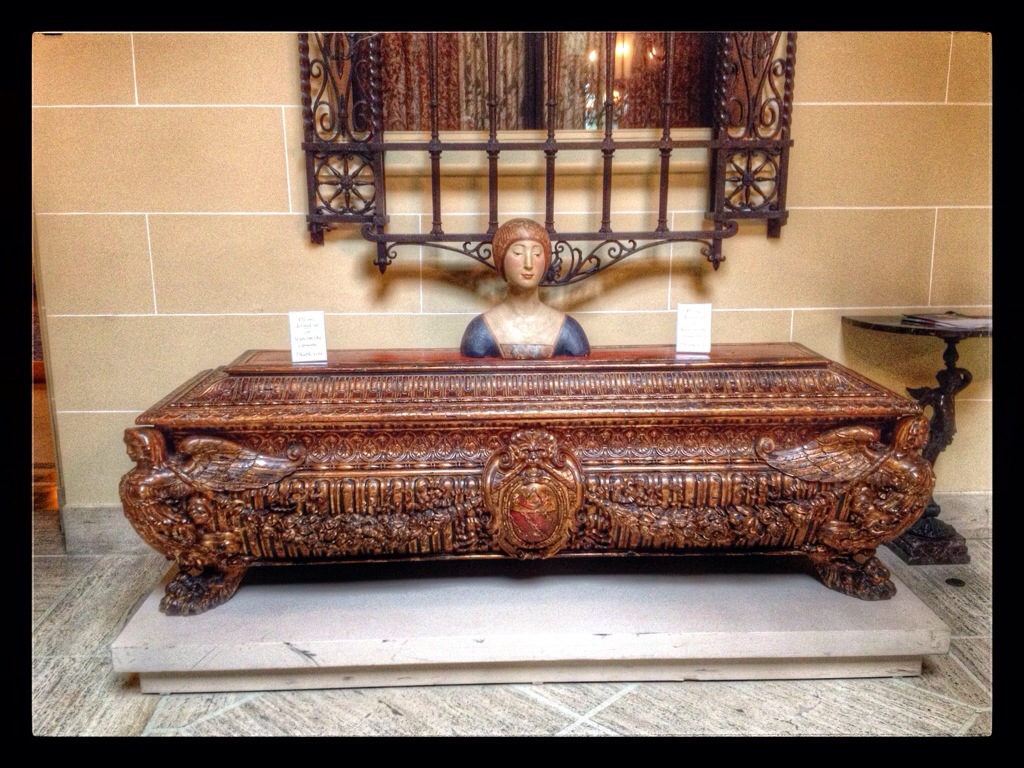 This is one of several cassoni in the house. These elaborate chests were built as hope chests for wealthy Italian women. At the time of a wedding, the chest would be carried to the bride’s new home.