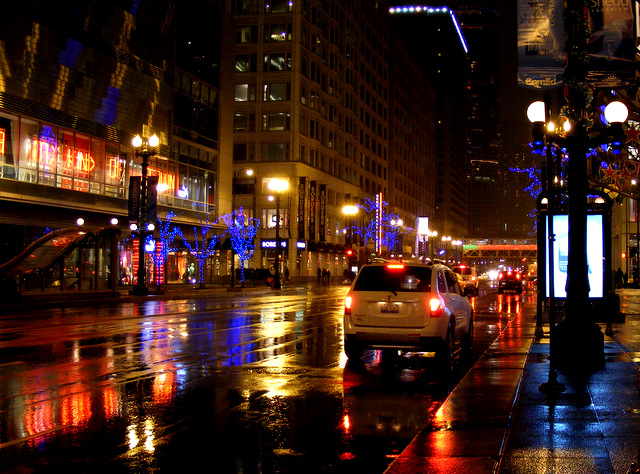 Last Friday, we took the train into Chicago to do the things everyone in the area is supposed to do every December. Our friends and their son came along. It rained the entire evening.