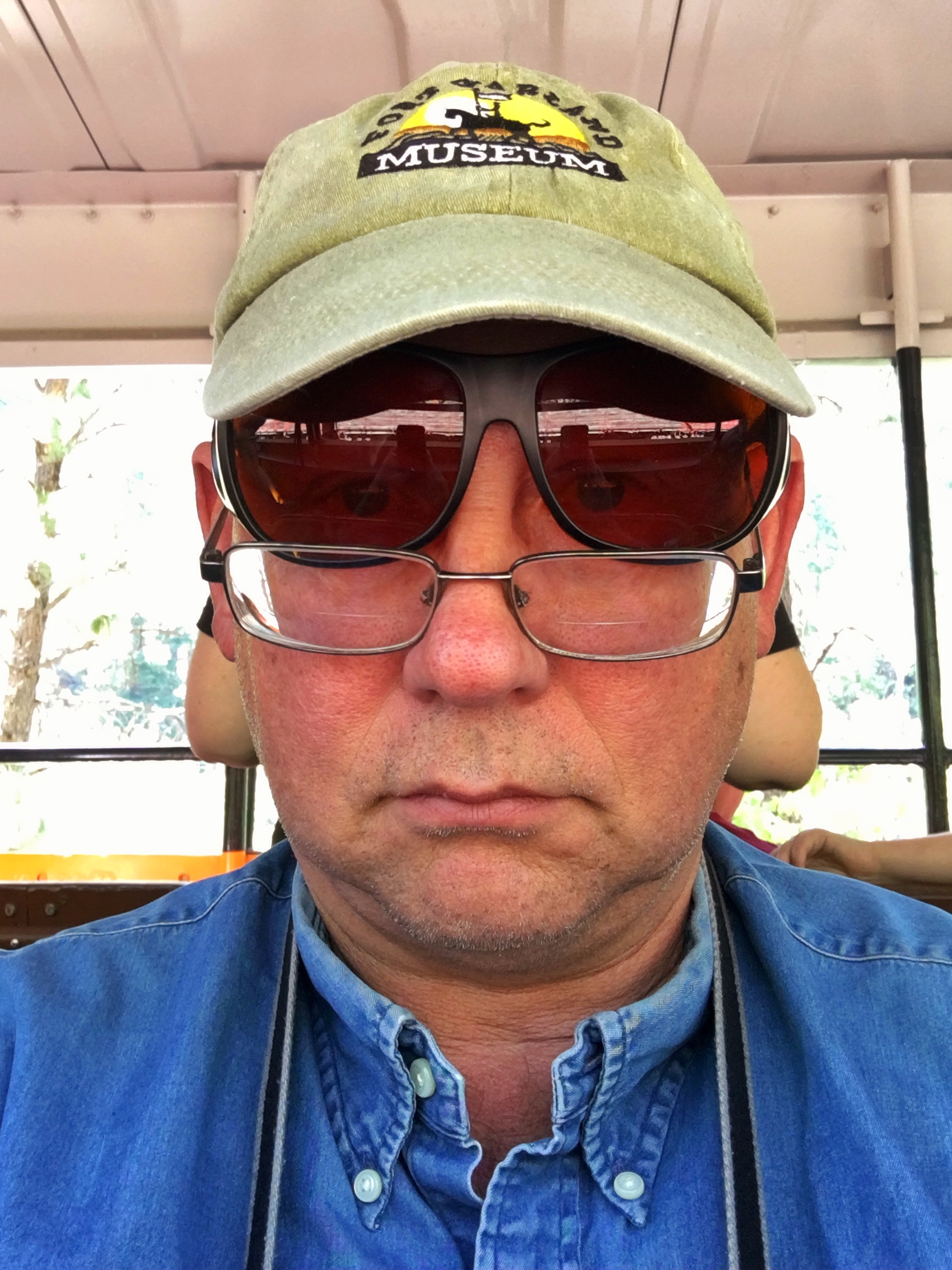 I took this selfie on the return trip, then put my $20 sunglasses in my shirt pocket. Somewhere along the way, I leaned over the car railing and the glasses fell out. I was paranoid that my cell phone would go the same way. It didn’t.