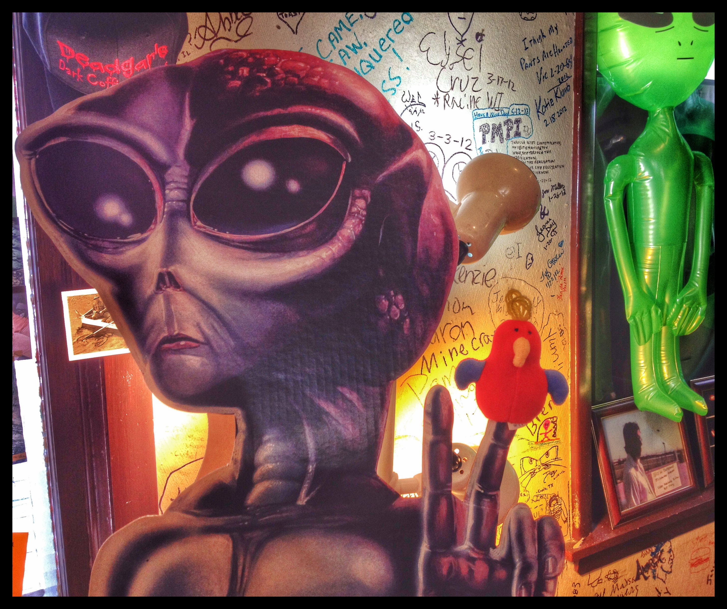 It was obvious that the place caters to those who believe (or pretend to believe) in ghosts, U.F.O.s, and odd paranormal phenomena. But at the same time it was filled will all sorts of silly kitsch — inflatable aliens, Star Trek figurines, sci-fi movie posters — that made fun of the belief.