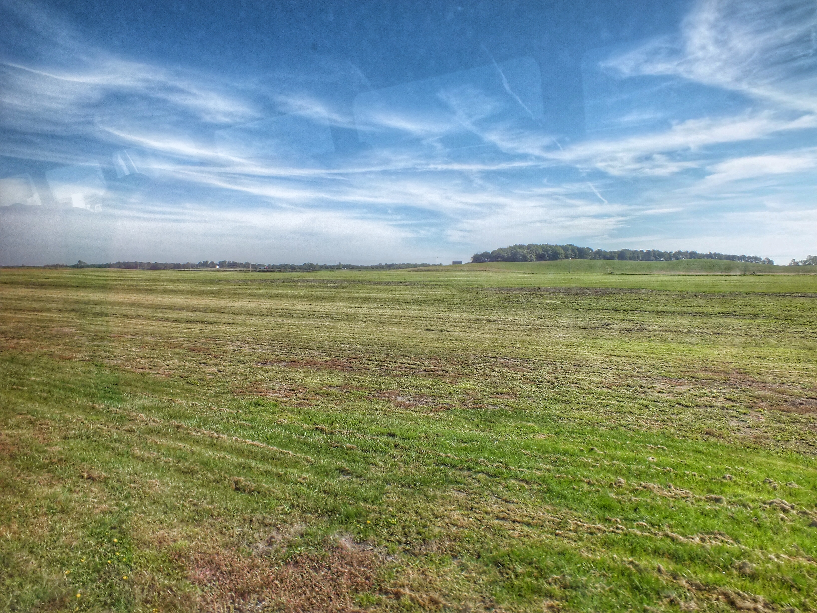 We wandered about a kids play area and rode a cow merry-go-round. When it was time for our tour, we climbed on a cow-painted bus and rode about half a mile through fields like this.
