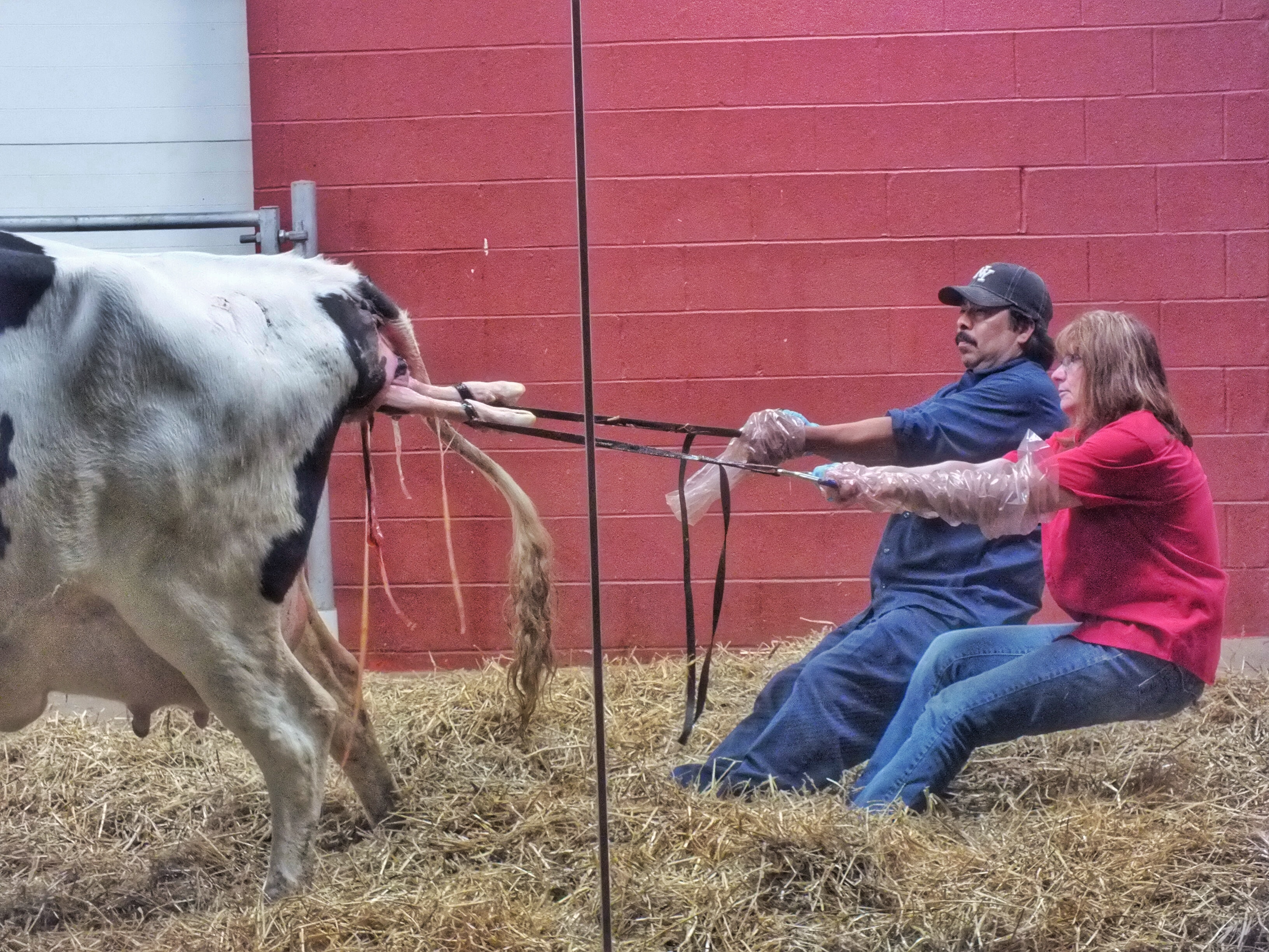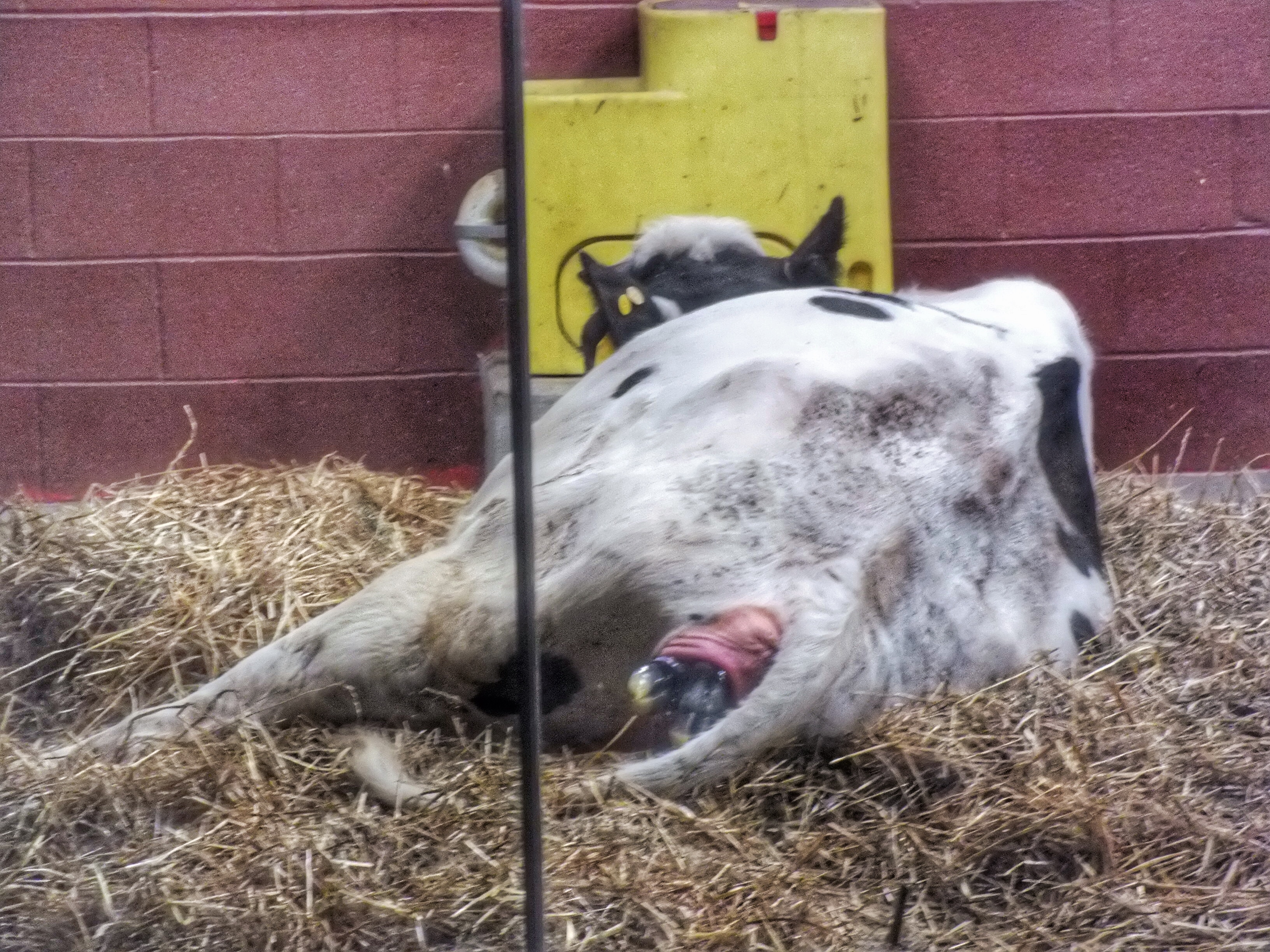 Another cow was laying down in the other stall, giving birth to her own calf with little fuss. She did point her nose toward the ceiling and give a bellow right at the end, but that was all.