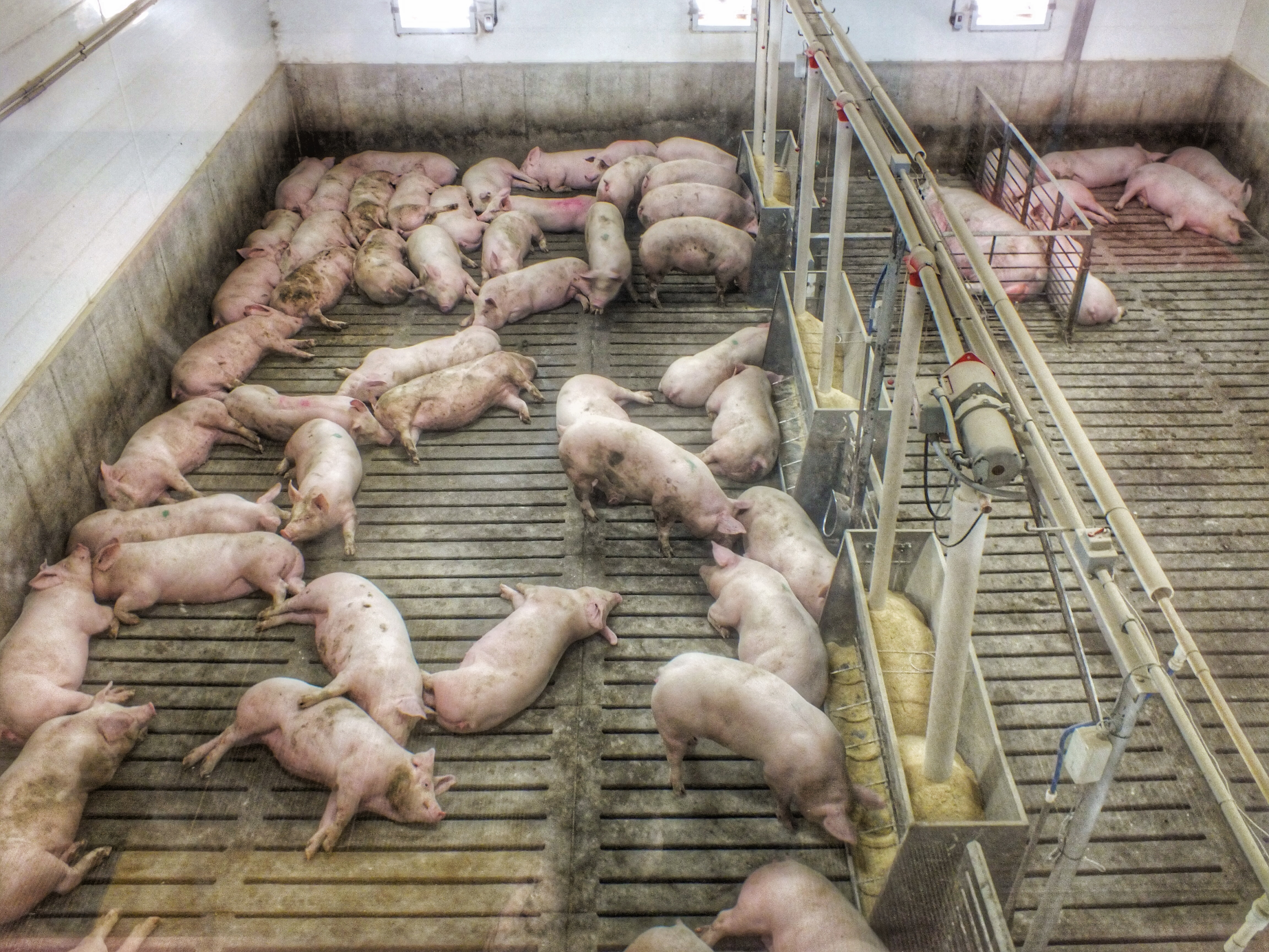 We then boarded another bus and drove to a building not far from the cow barn. We were told this one would take us an hour to view. We were in and out in 20 minutes. While there, we saw … pigs.