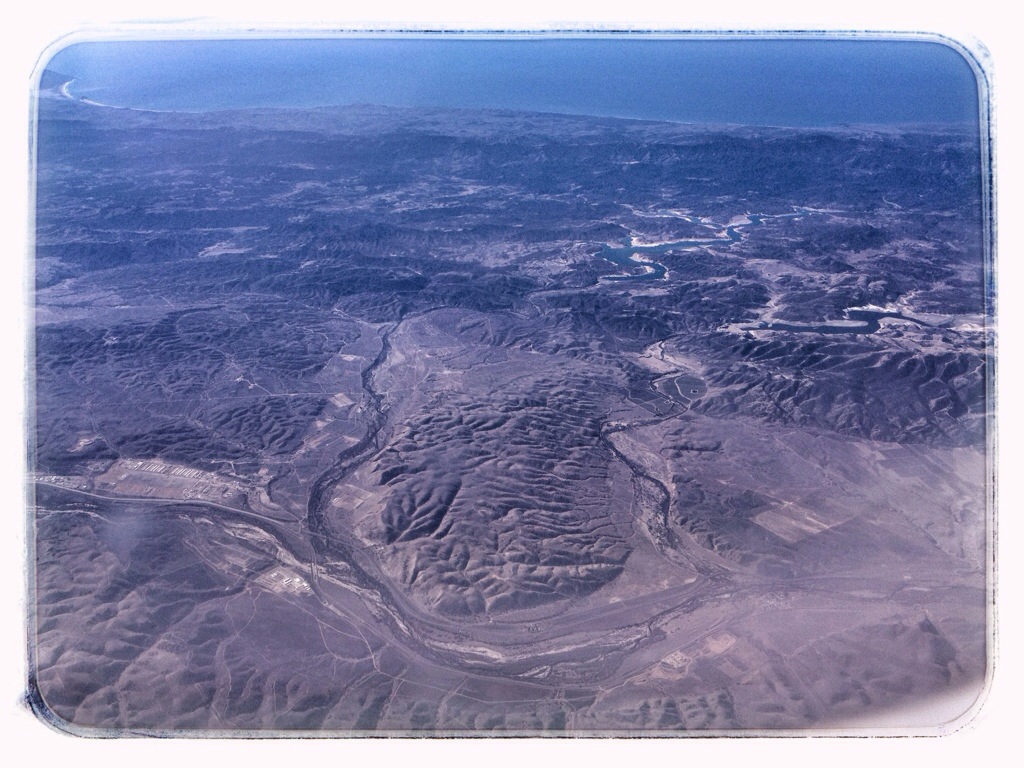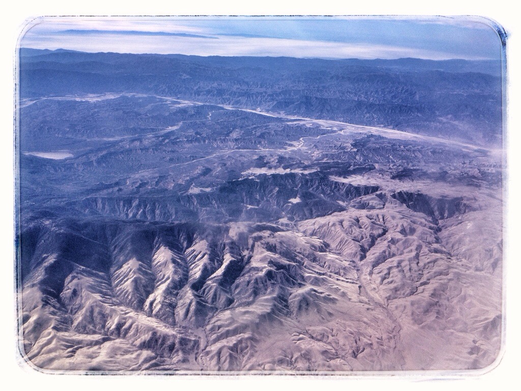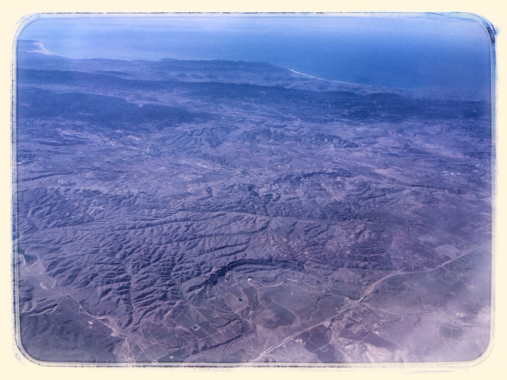 I took this picture because it was where the green(ish) of the mountains transitioned into desert. The green is Los Padres National Forest. The gash across the photo is the Cuyama River. The coast in the distance is somewhere around Santa Barbara.