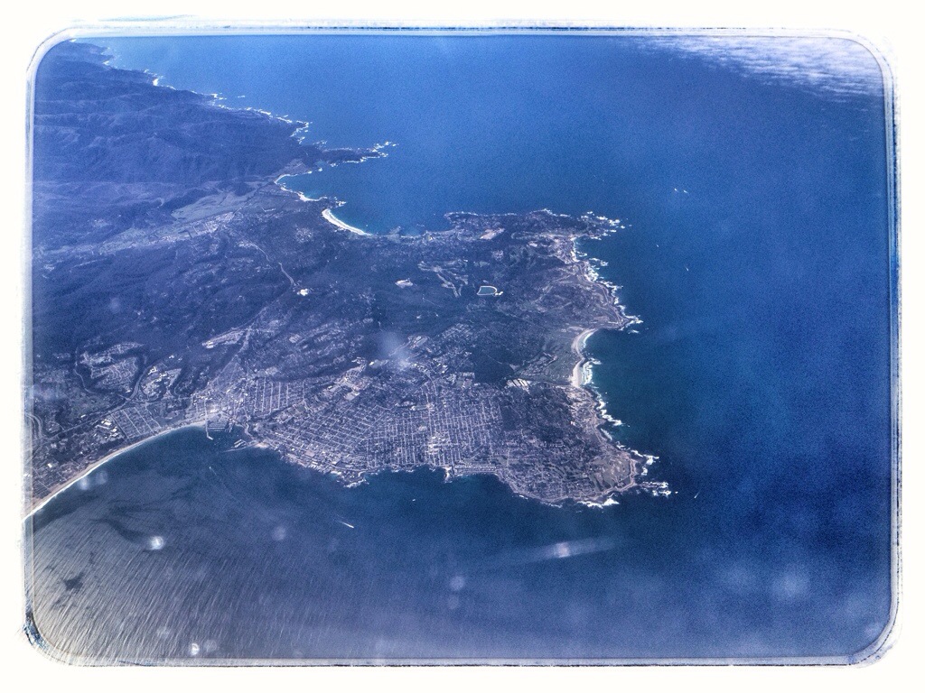 On the first flight, I made sure I was sitting on the left side of the plane so I would be able to see the coast. We traveled at around 10,000 feet. In the following photos, I’ll try to identify any landmarks that will identify the shots. (I realize this probably won’t be interesting to anybody but me, but I enjoyed it because I’ve never been any of these places and this may be the only time I see them.)