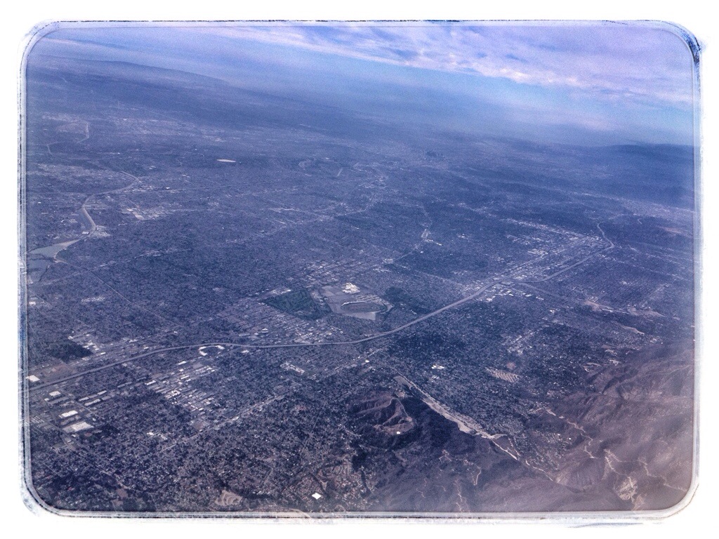 Downtown L.A. is left of center now. The white line pointing toward it is the Glendale Freeway.