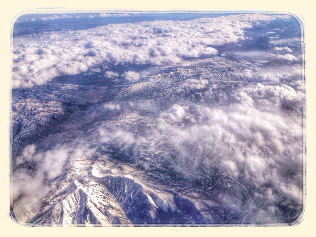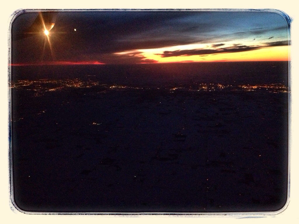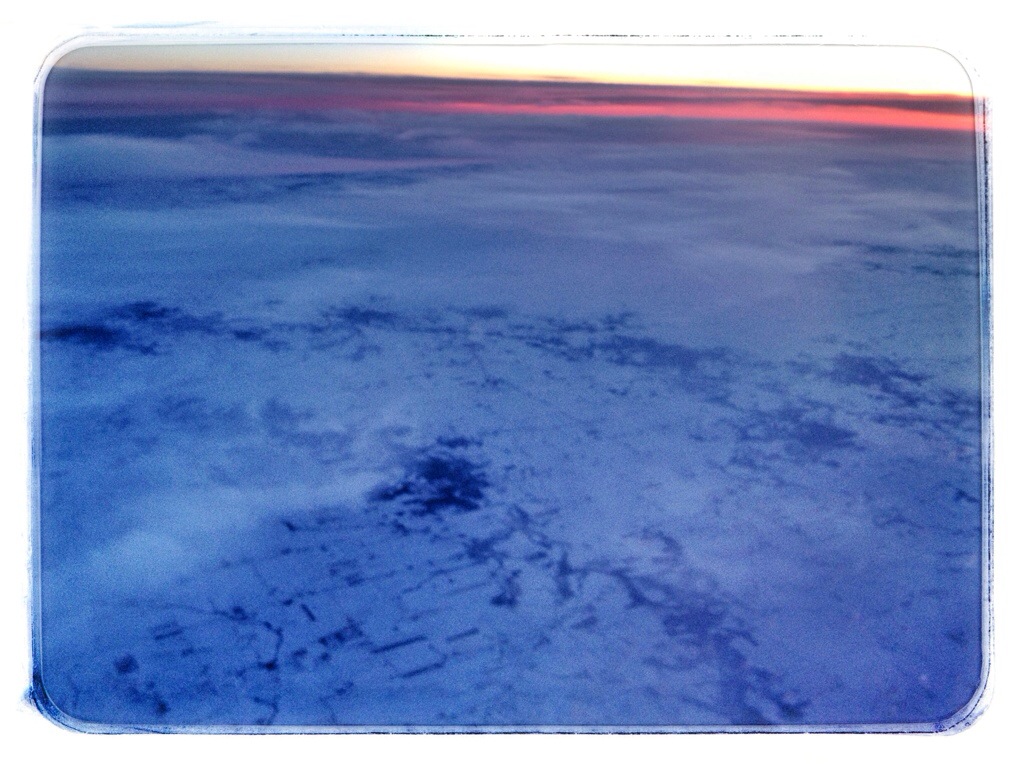 After we crossed the Rockies, it clouded over and I watched a movie on my iPad. When the sky cleared, it was getting dark.