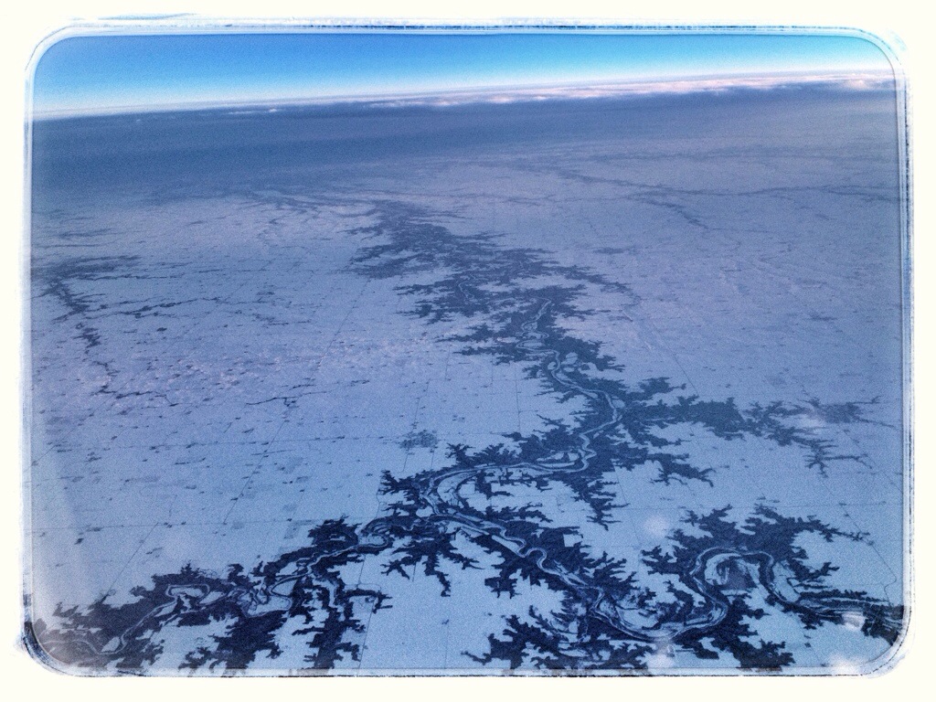 I had an hour layover in San Francisco, then caught a flight to Chicago. It was much harder to track our progress on this flight because we flew a lot higher and faster. I was on the right side of the plane, looking south.