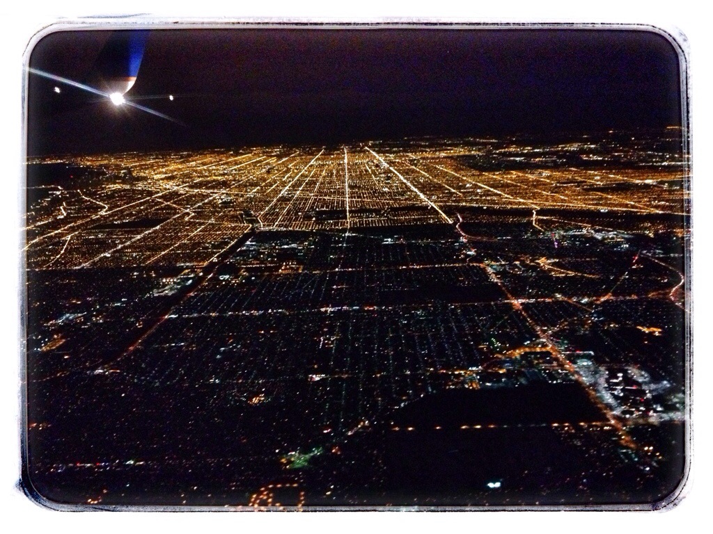 Chicago. Downtown is the dark area below the wing.