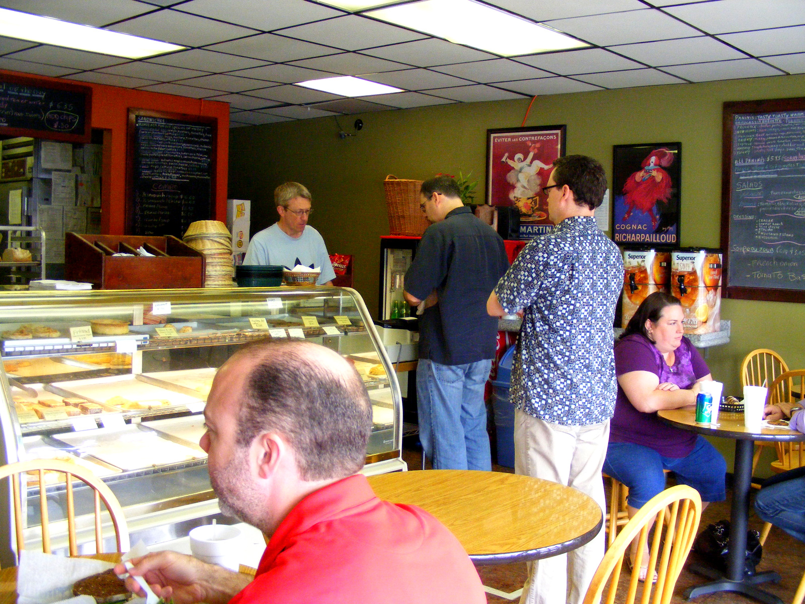 I ordered a ham and cheese sandwich (of course). The owner, who spoke with a decided French accent and spoke to several customers in French, asked me what kind of bread I wanted. He pointed to the French bread, naturally, so that’s what I went with. The sandwich was very good (one of the best I’ve ever had), and the bread was awesome.