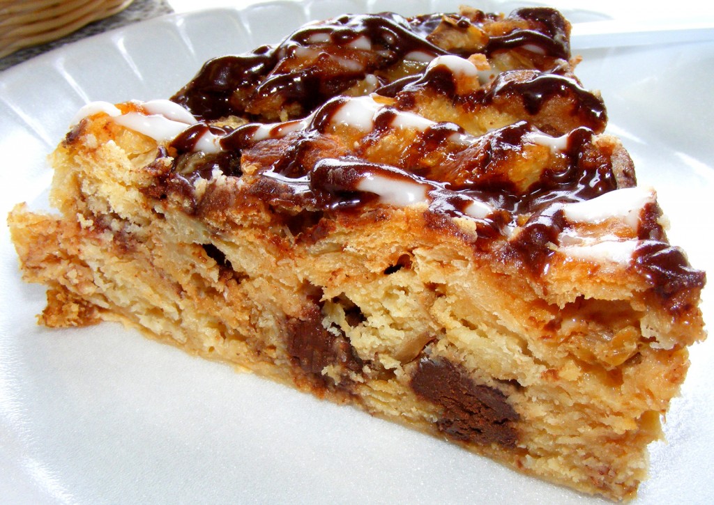 I went back to the counter and ordered a slice of bread pudding. The guy asked me if I wanted chocolate or blueberry. I asked him which was best, and he said chocolate, so that’s what I got. He was getting to know me by this point, so when he asked me if I wanted it cold or heated up, he immediately smiled and said “I like it both ways.” I went with cold.
