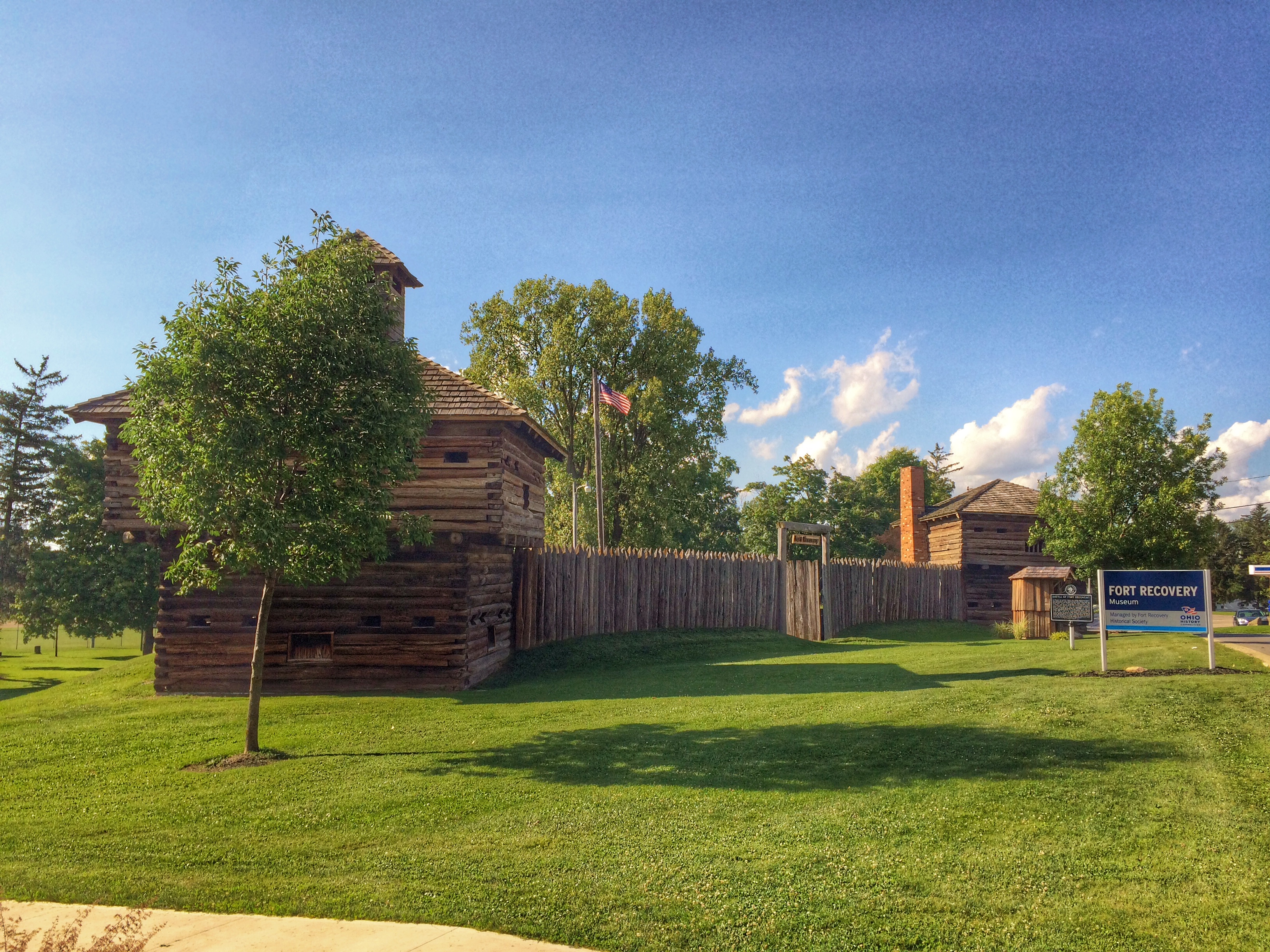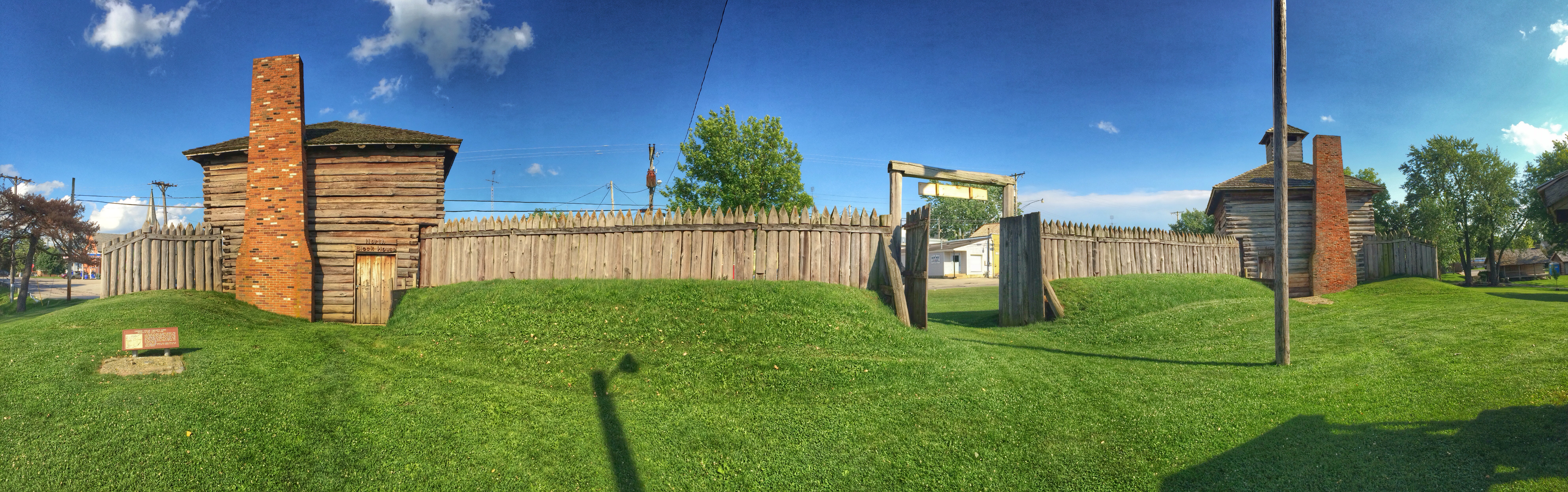 A partial reconstruction of the fort — one wall and two blockhouses — has been built a couple blocks from the memorial. There’s also a museum, but it was closed by the time we arrived. Which is just as well. If it was open, I would have gone in. But it cost $5, isn’t very large and is filled with mannequins dressed in period costumes.