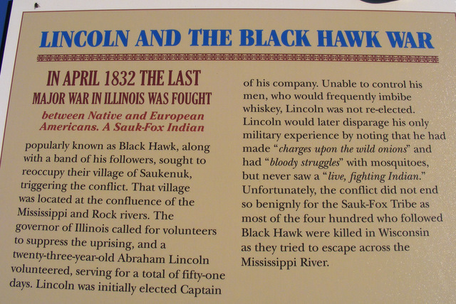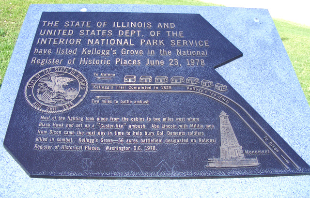 I had time for one last adventure. I drove about 20 miles west of Freeport on increasingly rural roads. At the intersection of two dirt tracks in the middle of miles of farmland, I found a small park and a stone monument on the site of Battle of Kellogg’s Grove which took place here in June, 1832.