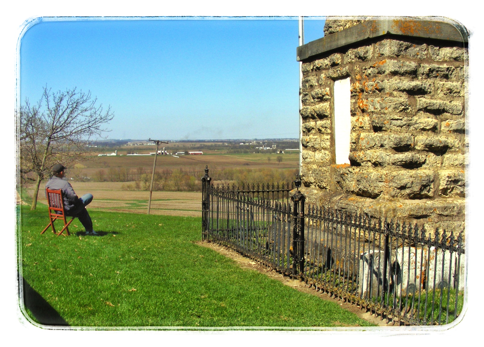 The weather was delightful, the view, for Illinois, was impressive and the quiet was pleasant. There were no other people around, of course. You could wander around Illinois for a very long time before happening upon this place by accident.