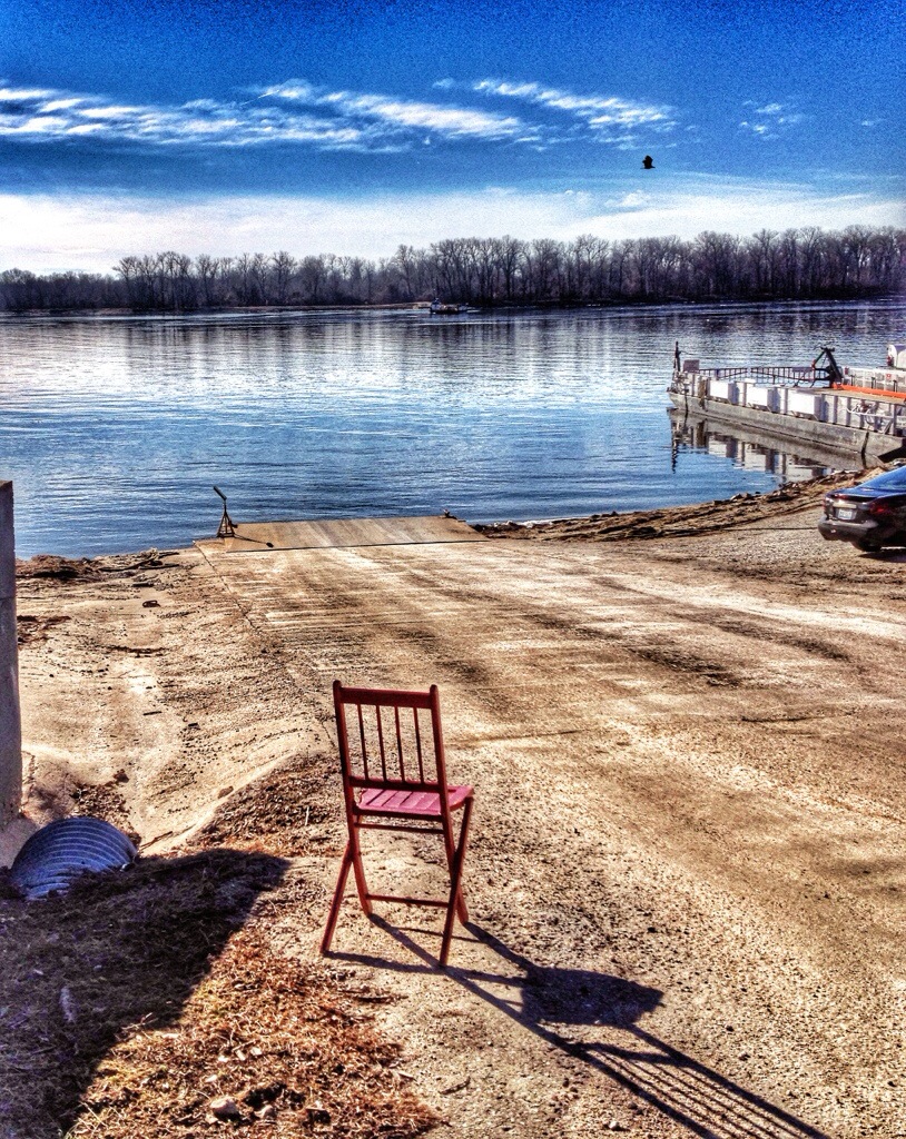 I set up the chair and took a photo of the river just as a Bald Eagle flew by.