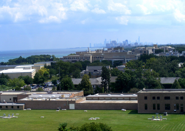 Looking south over Northwestern University to Chicago.