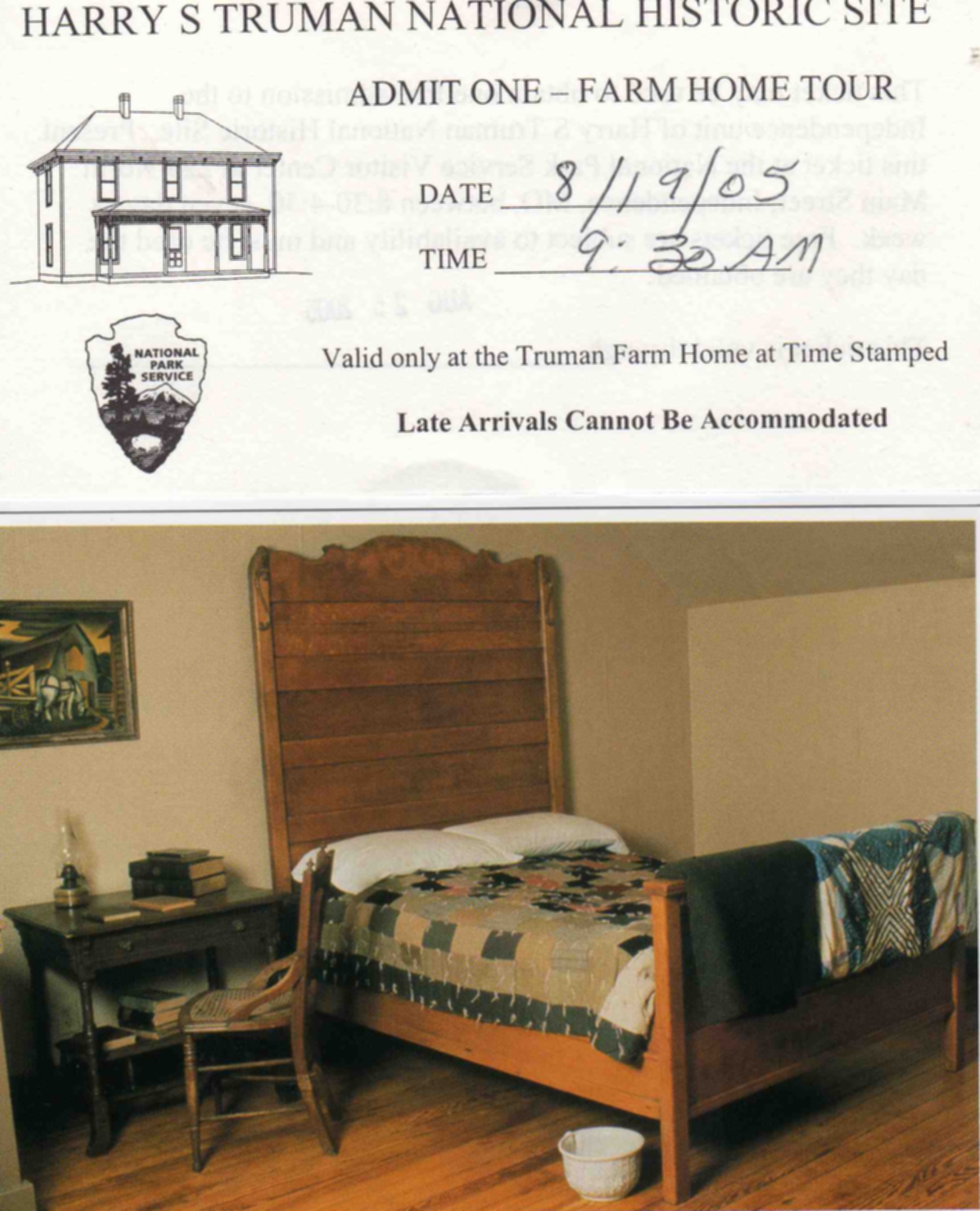 The tour took about 20 minutes — there are only three bedrooms upstairs and a parlor, family room and kitchen/dining room downstairs. Truman lived here for 11 years just before World War I, running the place for his grandmother.