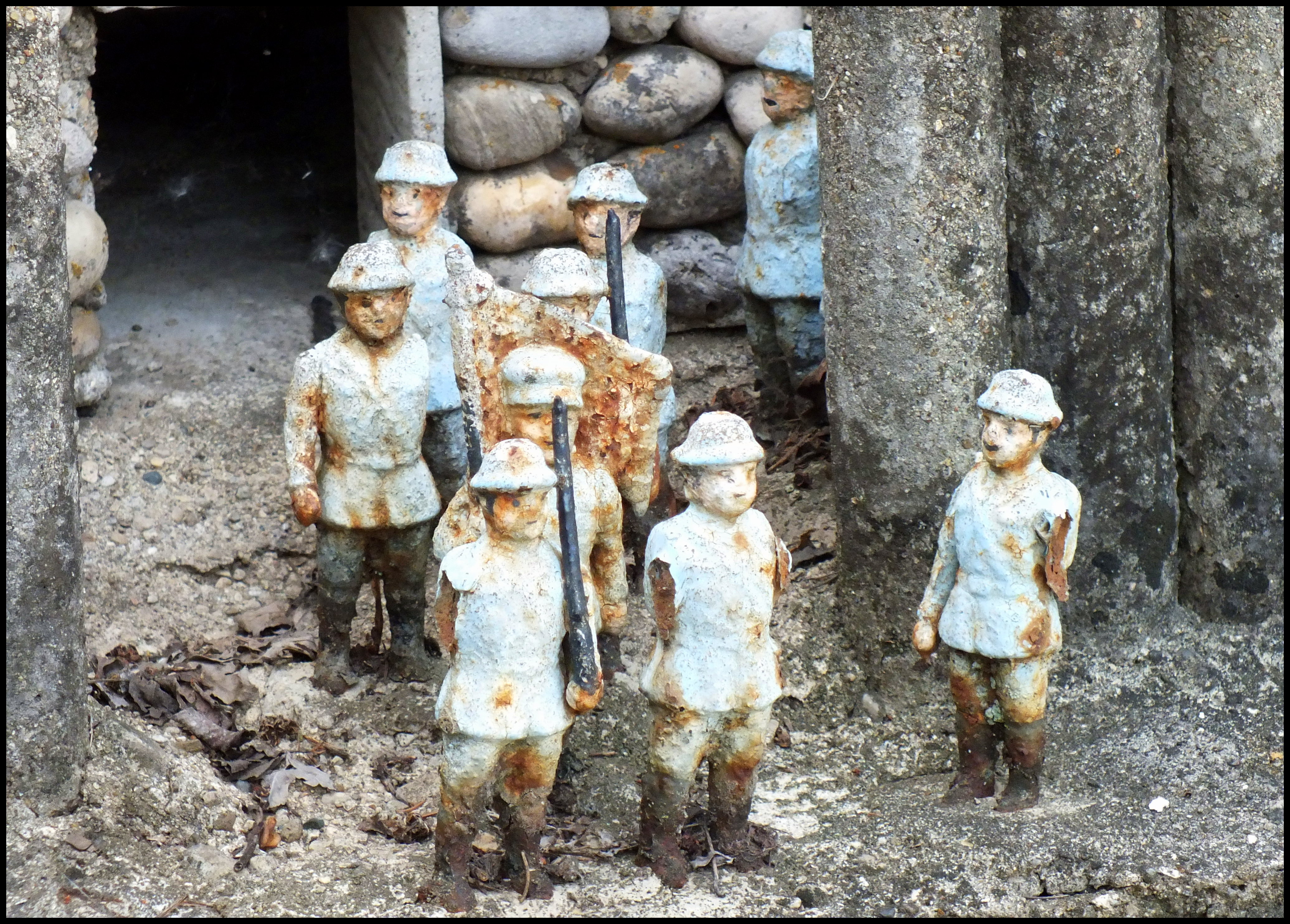 And this one says, “Footpath to pece God give us men.” Others said “Let us smile,” “Lead kindly light,” and “Baby your mother.”