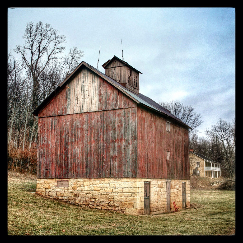 This old barn and a nearby stone house sit along Highway 100 between Grafton and Pere Marquette Lodge. And since there were no signs or people to tell me otherwise, I pulled over and walked around. The sign over the door says “Heastman 1816.” I’m not sure if that means the barn is that old.
