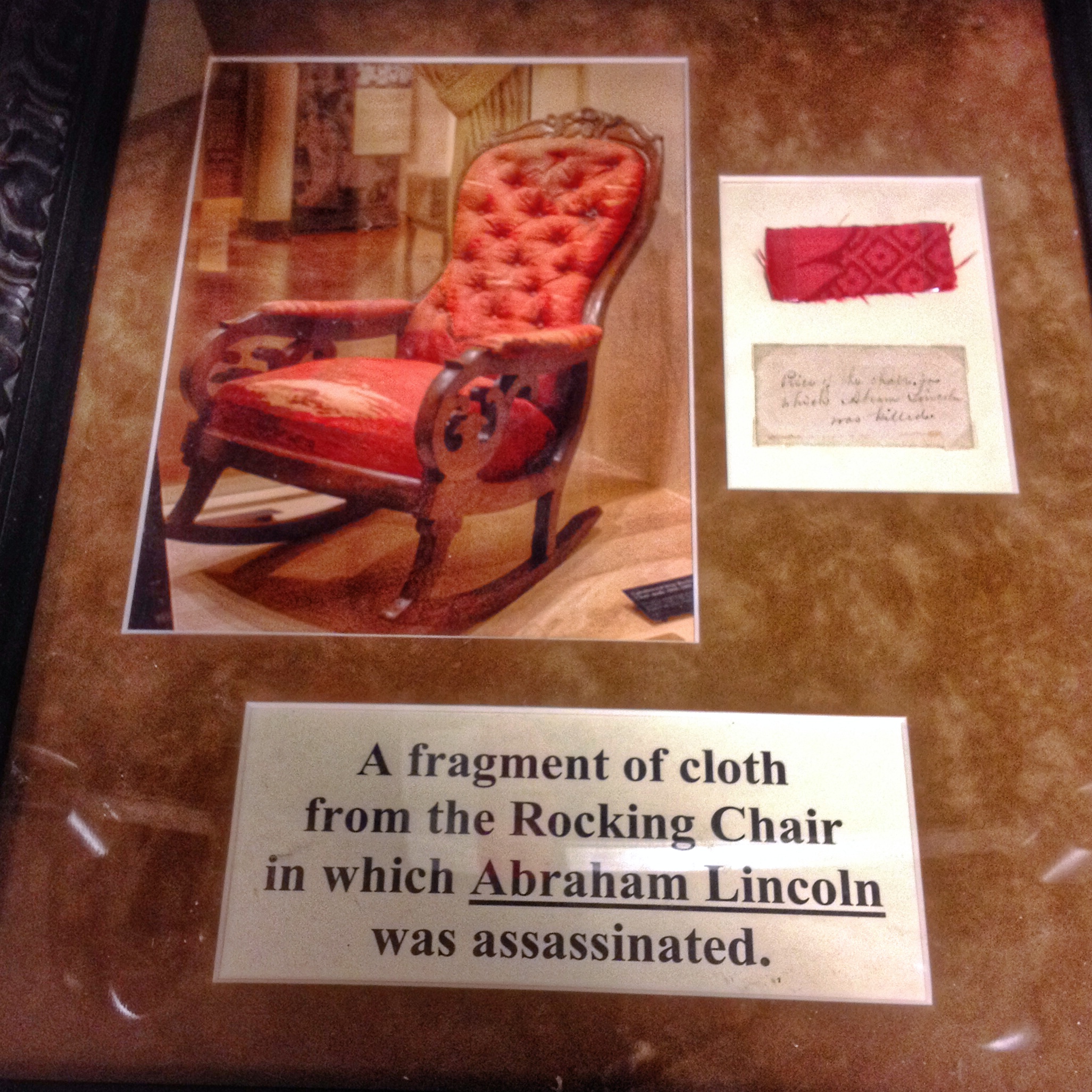Piece from the chair in which Lincoln was assassinated