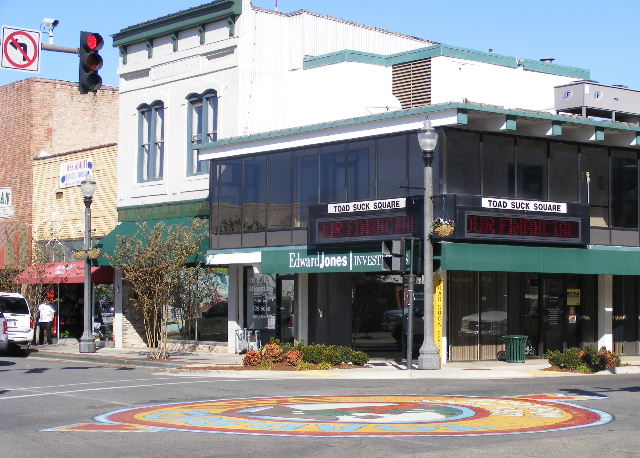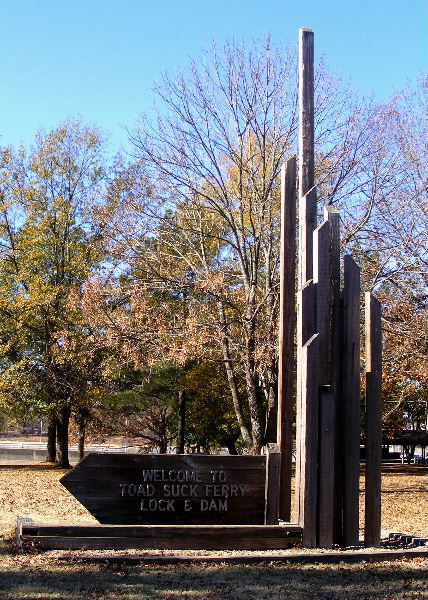 This was the location of a ferry crossing on the Arkansas River until 1970 or so. At some point, a tavern called Toad Suck served travelers on the river. Legend has it that bargemen would drink there until they swelled up like toads — hence the name. The problem is that this legend is neither believable or particularly creative. If you’re interested, here’s a website that discusses other possible origins for the name. I find the “stupid American mispronunciation of a French word” theory to be much more believable and more amusing.