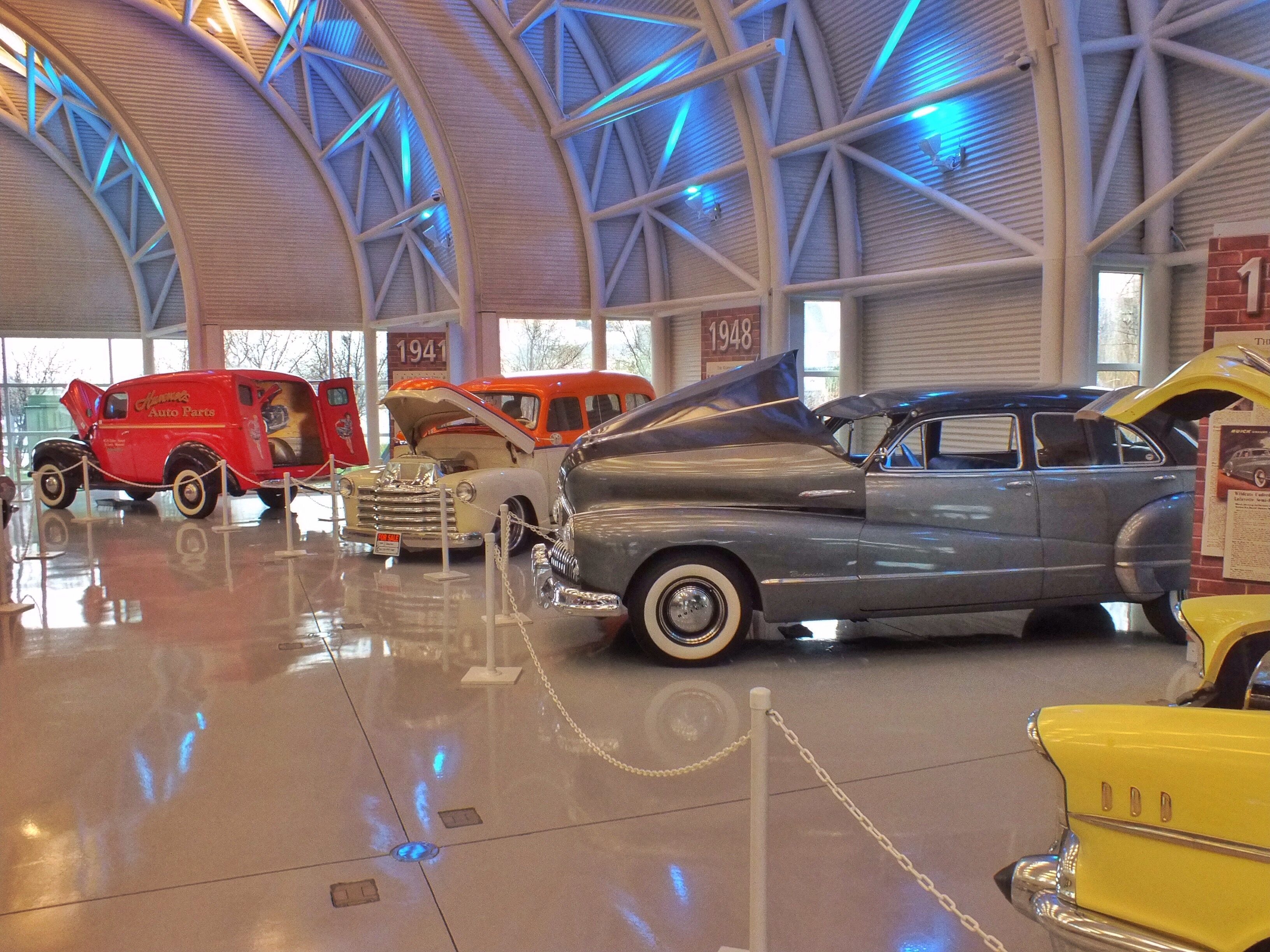 And an exhibit hall. On the day of our visit, they had some old cars next to blow-ups of newspapers from the years the cars were produced.
