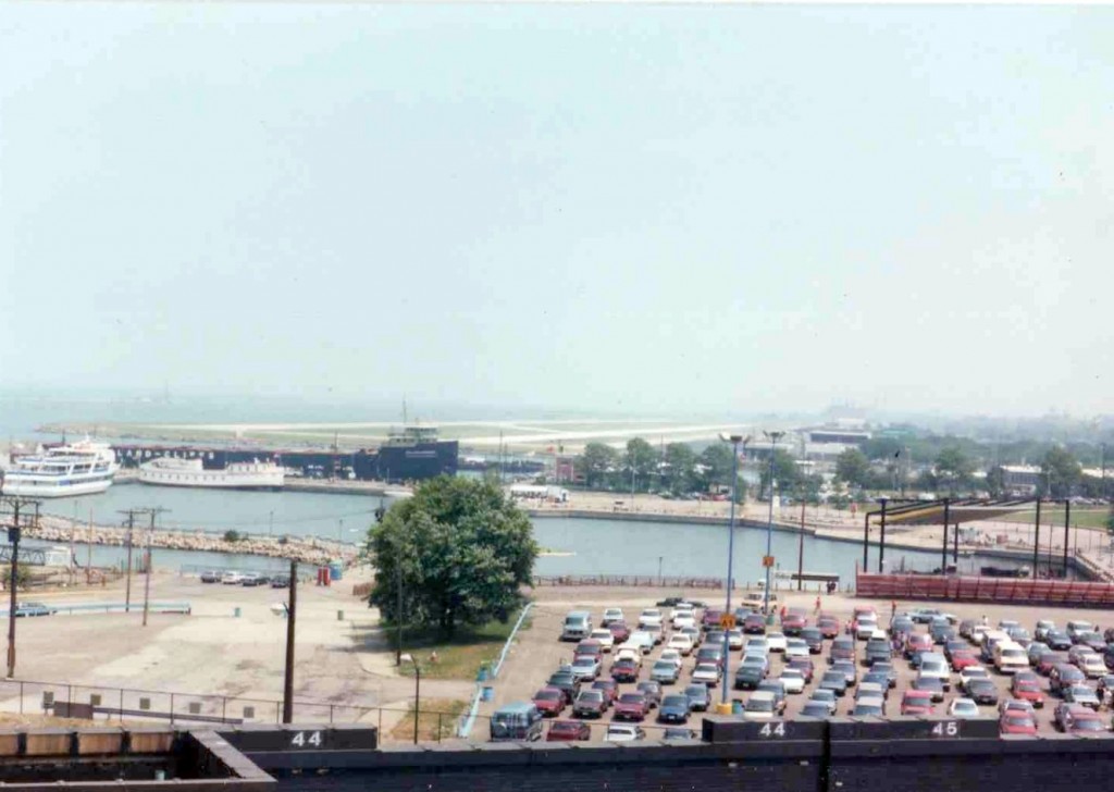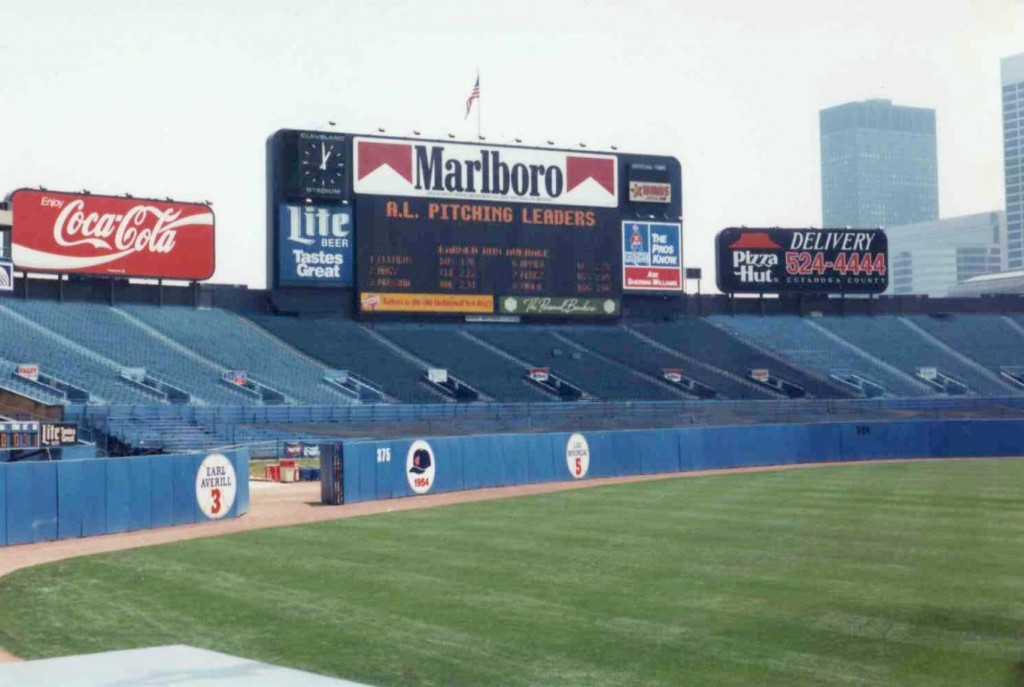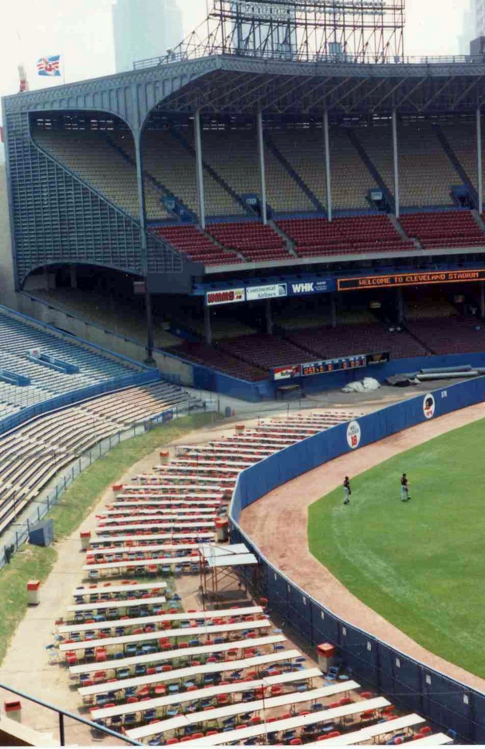 The first-base side of the stadium. Downtown Cleveland is off to the right.