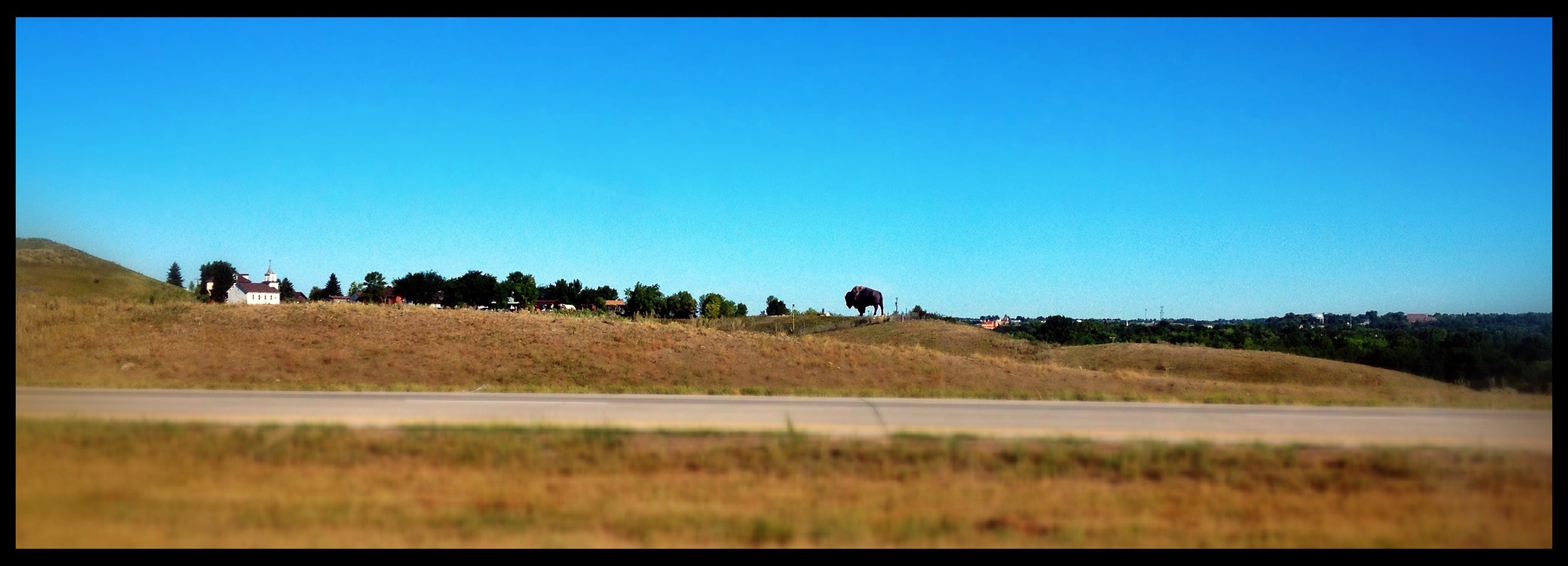The white buffalo were a bit trickier to find. They’re part of the herd belonging to the National Buffalo Museum (which we didn’t bother paying to see). We were in the area for several minutes before we spotted one as it walked up out of a swale.