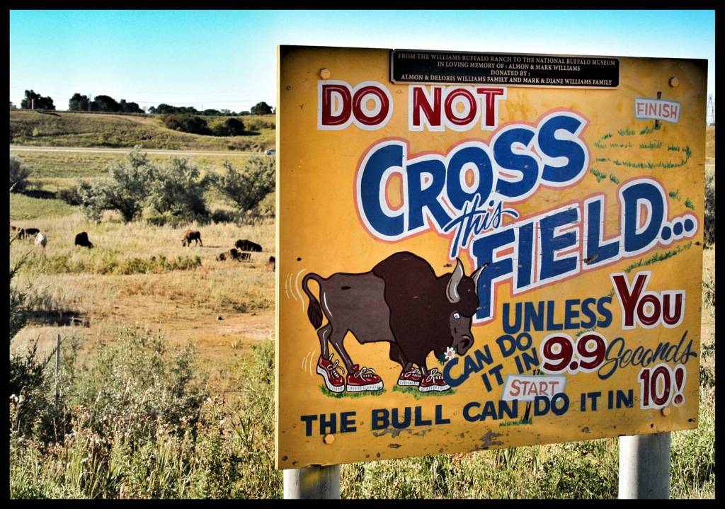 There was a group of four young women by the statue who were taking dozens of photos of each other, none of which had anything to do with the buffalo but all of which were in my way. I walked back and forth trying to find a shot that didn’t include them while making snarky comments to my wife about how oblivious they were. Of course, one of them asked me to take a photo of the four of them. I agreed, then try to explain to them that they had to be facing into the sun or their faces would be in shadow. They questioned this at first, then moved into the wrong position, then finally got in place after one of them said, “He must know what he’s talking about. He has a really nice camera.” A couple minutes later, as we were leaving we had to wait for them to get out of the middle of the road where they were having a discussion on which way they wanted to walk.