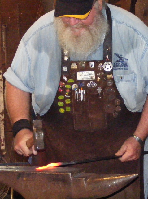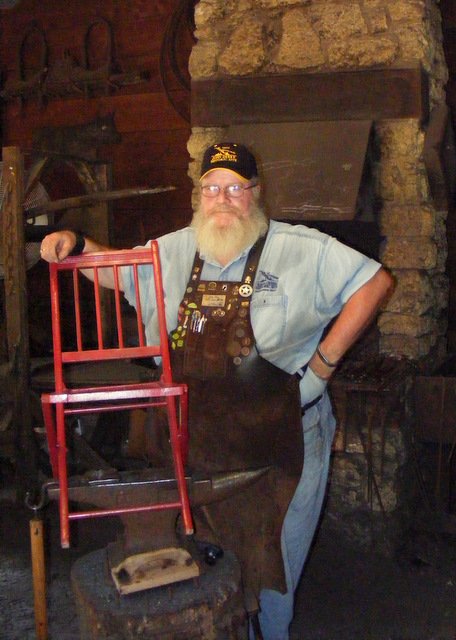 A blacksmith named Rick, who obviously enjoys his job, gave us a short explanation of smithing, then created an iron decorative leaf on his forge.